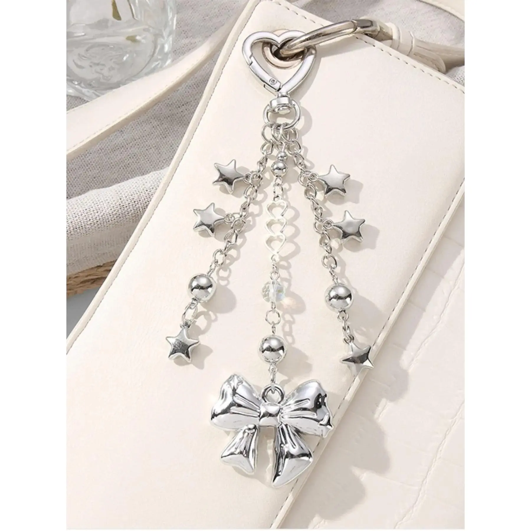 5. Sweet Cool Fashion Resin Bead Heart Star Charms DIY Keychain, Cute Bow Design, Perfect for Bag and Key Decoration, All Seasons Accessory