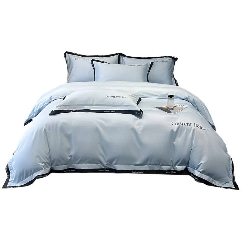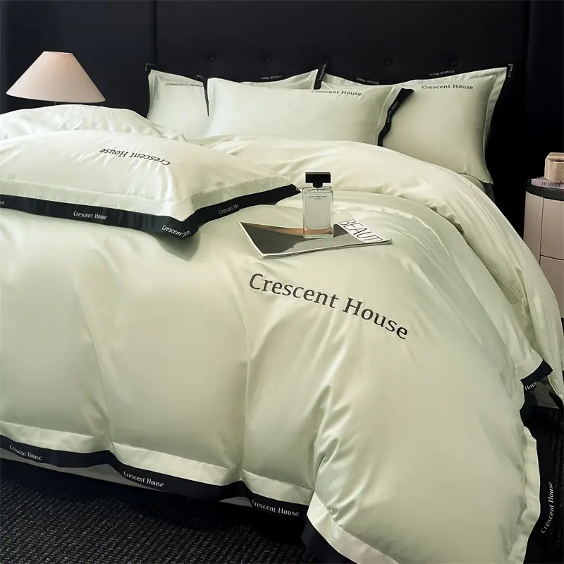 New washed ice silk four-piece set, light luxury and high-end feel, embroidered bed sheet and duvet cover set for summer