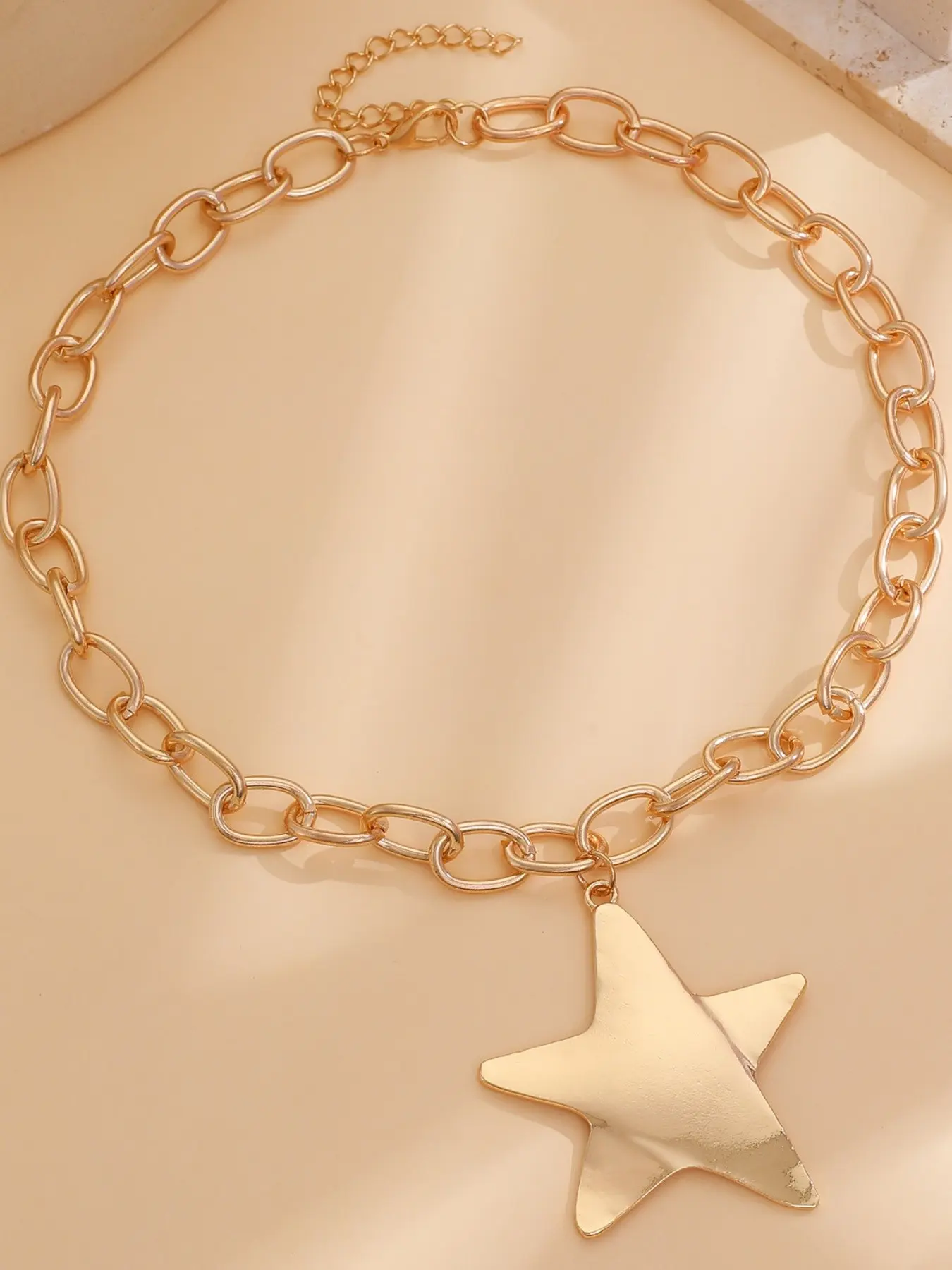 Trendy Geometric Star Pendant Necklace, Fashionable Unique Bold Star Collar Chain, Hot Selling Jewelry Accessory for Stylish