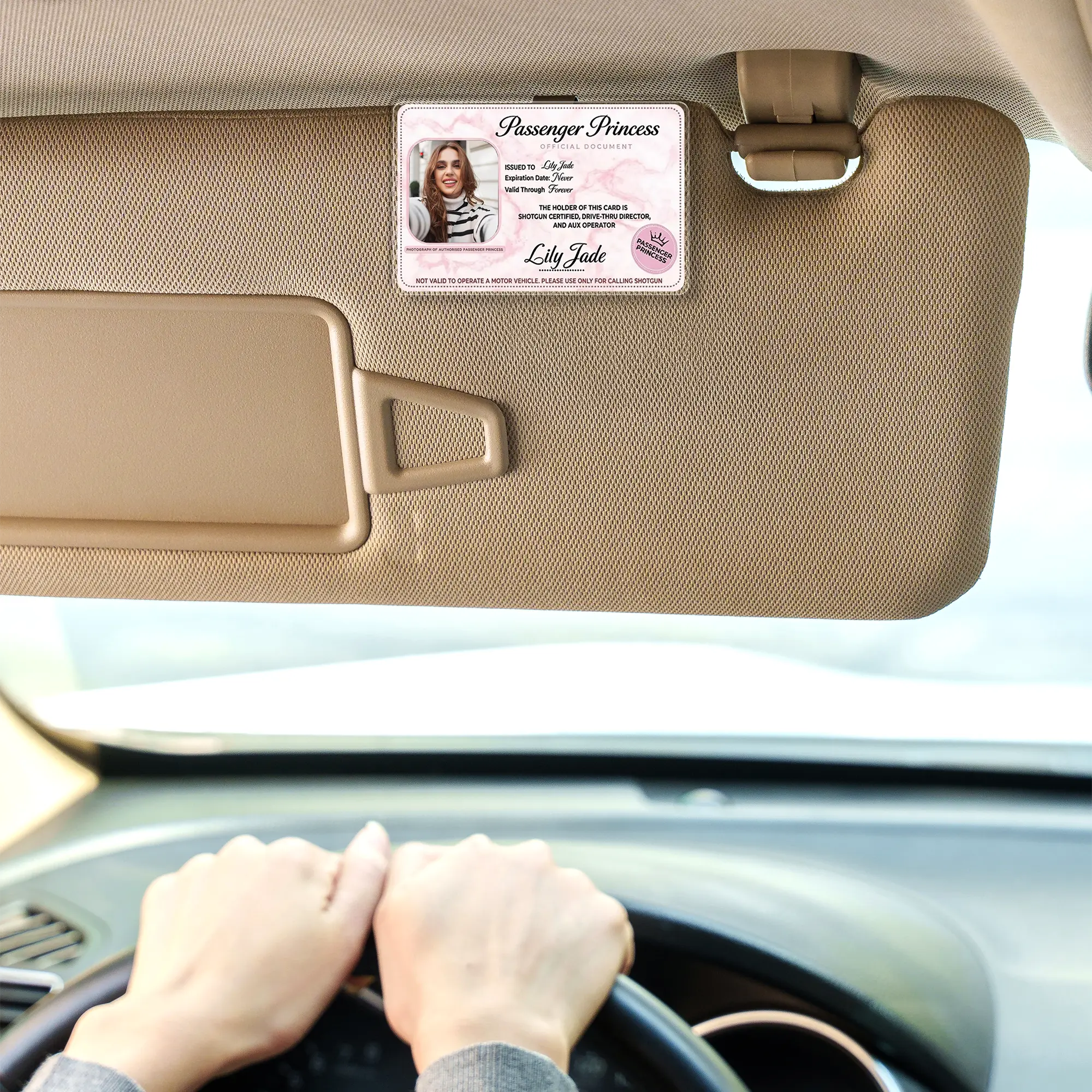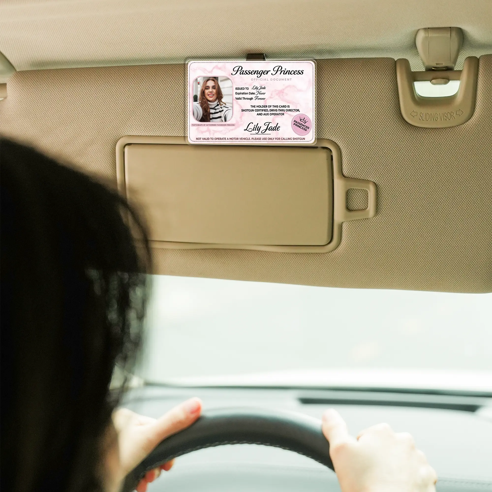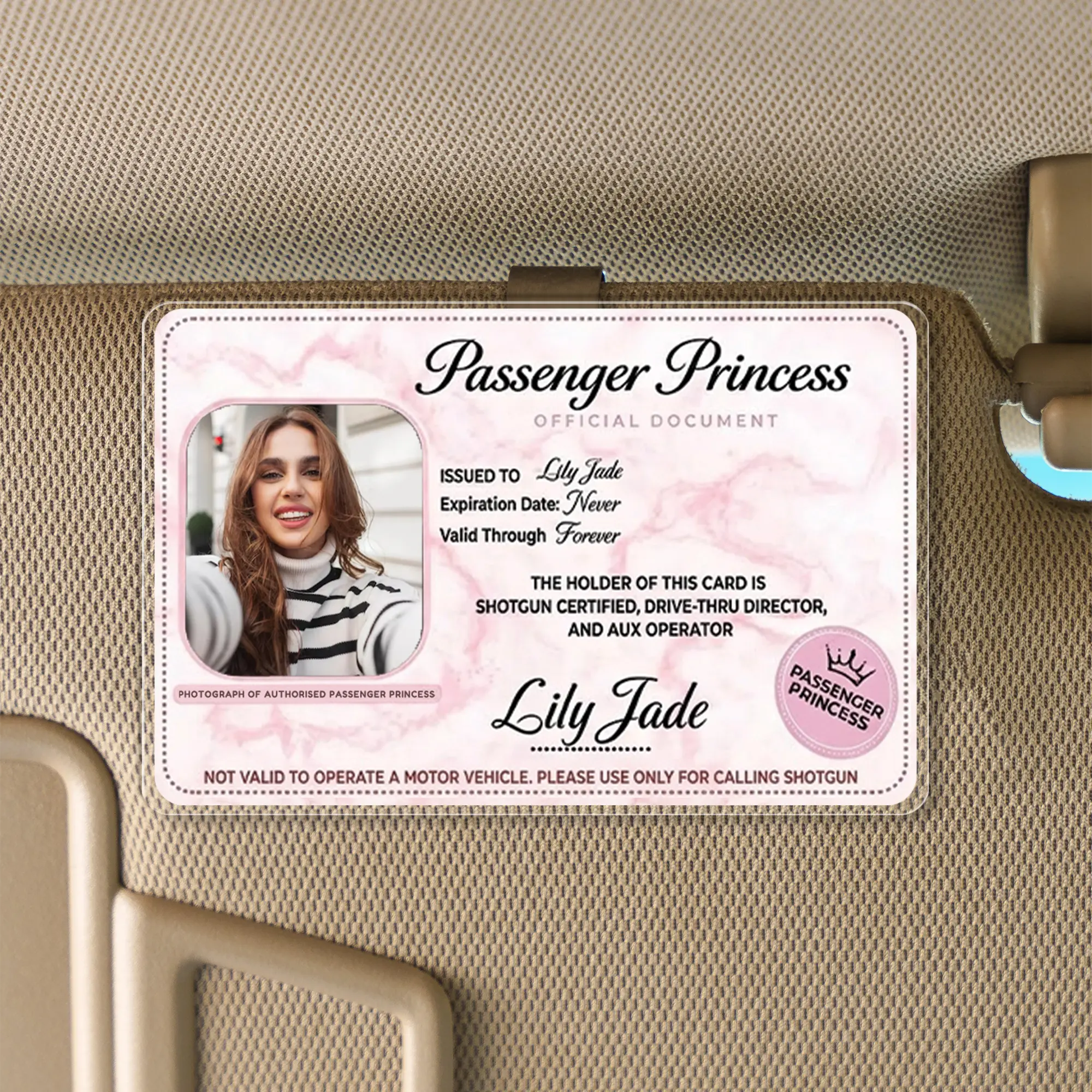 5. [Flash Deal] RodyThread Personalized Passenger Princess Car Visor Clip – Custom Photo Certified Car Decor, Car Accesories Trendy Pink Marble Gift for Her, Him