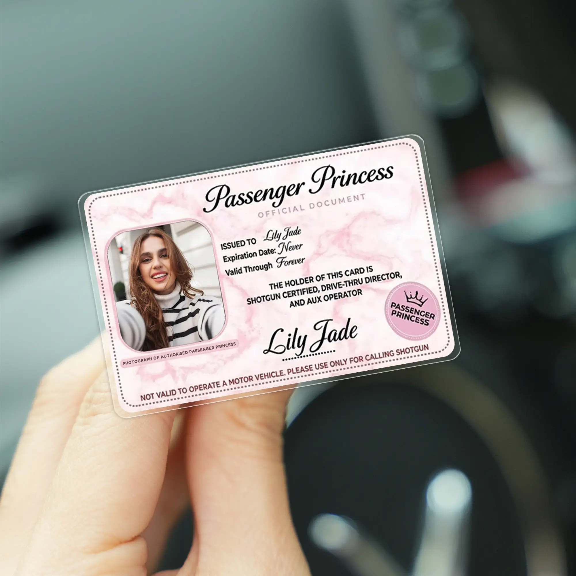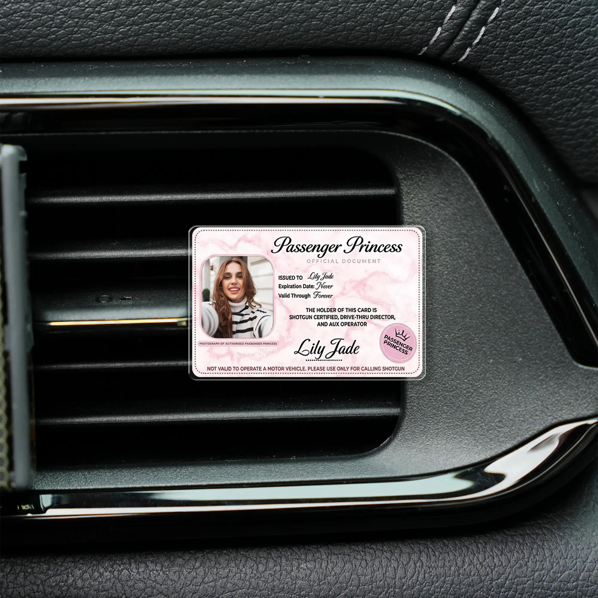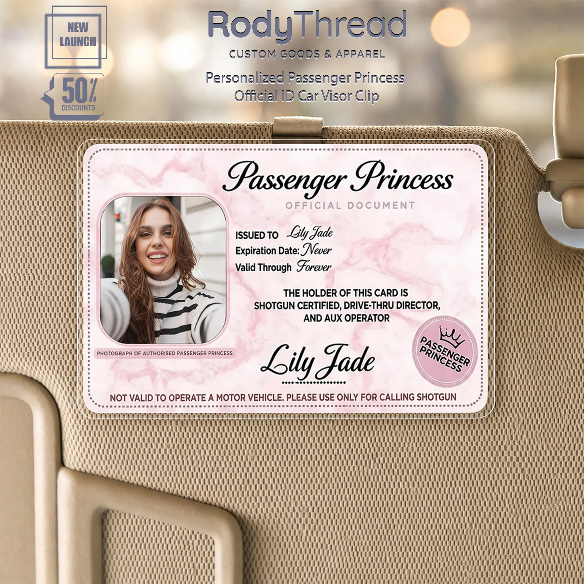5. [Flash Deal] RodyThread Personalized Passenger Princess Car Visor Clip – Custom Photo Certified Car Decor, Car Accesories Trendy Pink Marble Gift for Her, Him