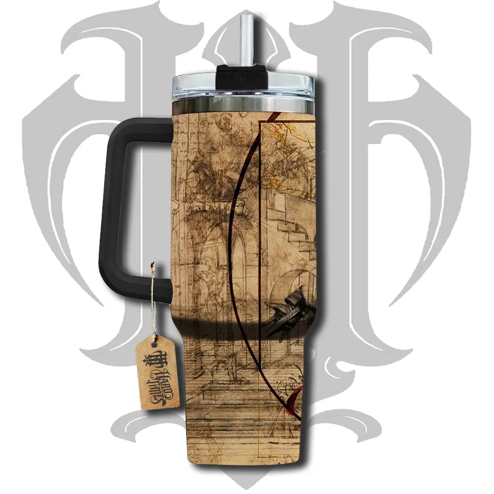 HardTimesMerch - Assassin’s Creed II #1 40oz Handle Tumbler Stainless Steel Travel Mug, Game Inspired Vacuum Insulated Cup, Large Iced Coffee Tumbler, Manga Fighter Drinkware, Gamer Gift for Him Her