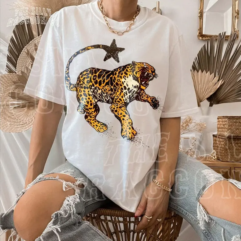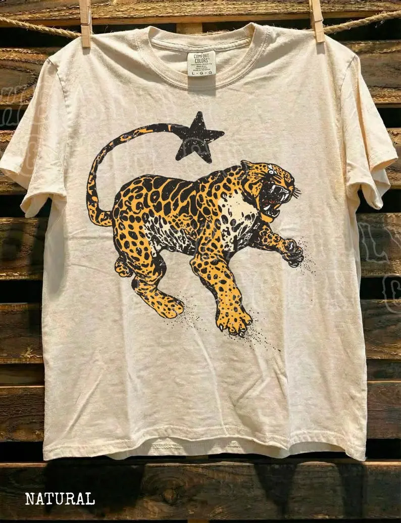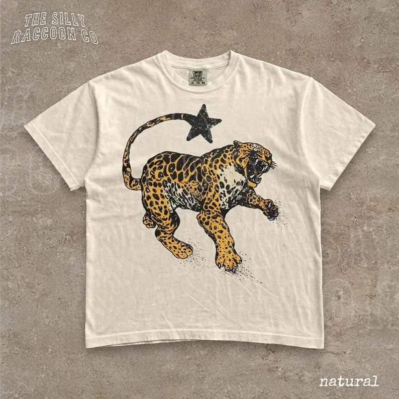 Comfort Colors Vintage Inspired Jaguar Shirt Retro Nature Graphic Tee Trendy Animal Print Top Y2K Streetwear Clothing For Men Women