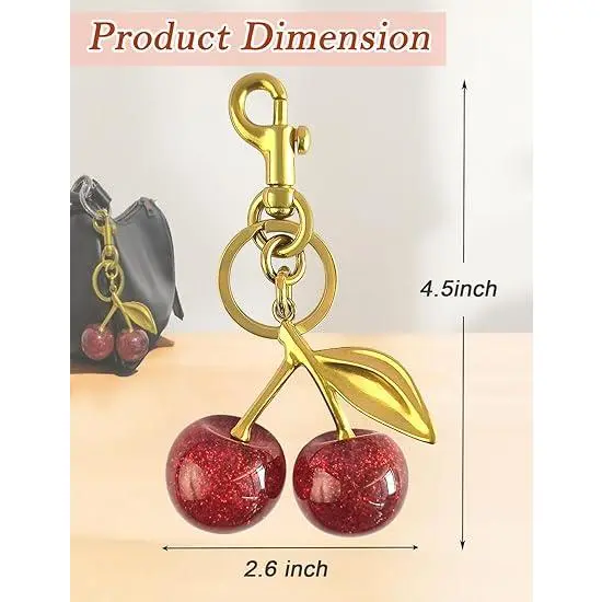 5. Cute Cherry Design Keychain, Fashionable Heart Decor Keychain for Women & Girls, Trendy All-match Keychain for Birthday Gift, Cherry Key Chain with Heart Clip, Cute Charms Keychain purse accessory adorable add-on