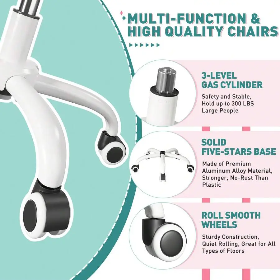Built with smooth-rolling 360° swivel casters, this chair moves silently and safely on hardwood floors, carpets, and other household surfaces.You can reposition freely without noise or scratches, bringing convenience to your workspace or vanity area.