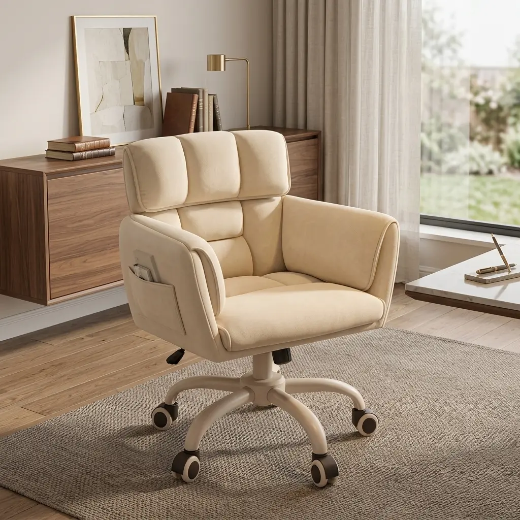 Upgrade your bedroom, home office, or vanity space with this stylish and functional upholstered desk chair.Designed for both comfort and versatility, it blends a clean modern look with ergonomic support to fit your daily work, makeup, study, and relaxation needs.
