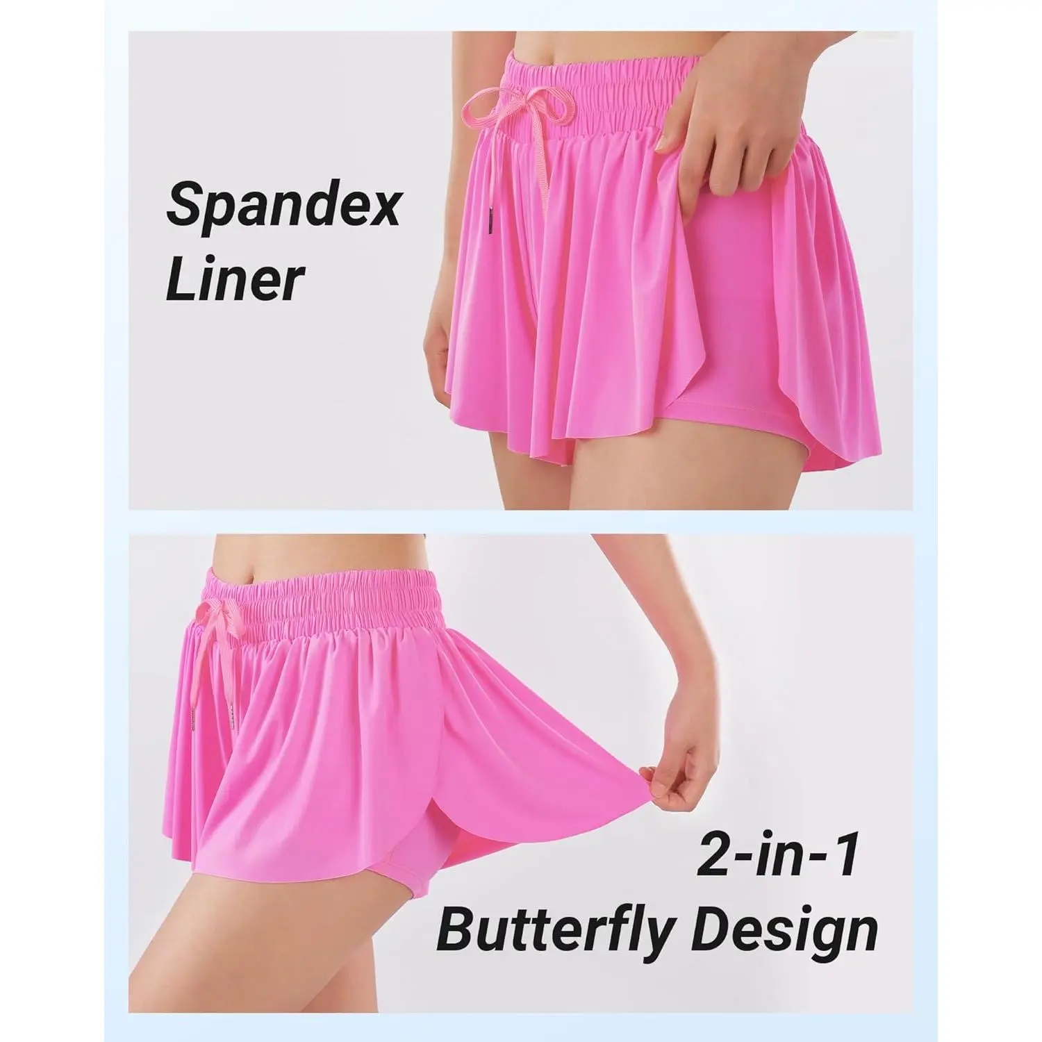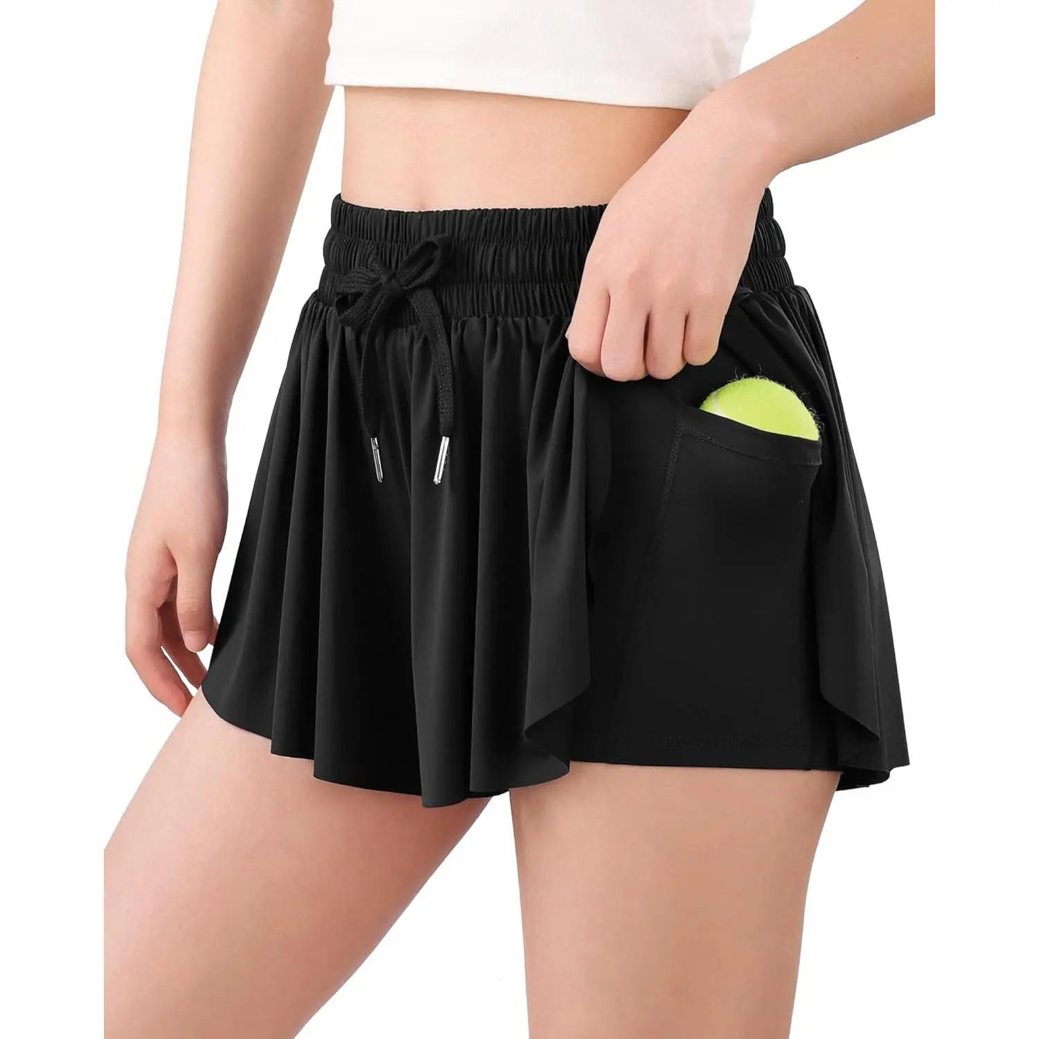Girls Butterfly Shorts Flowy Shorts with Pocket 2-in-1 Dance Athletic Shorts for Girl 7-14 Years
