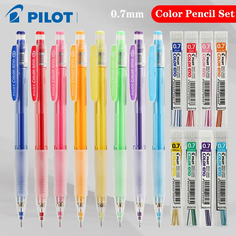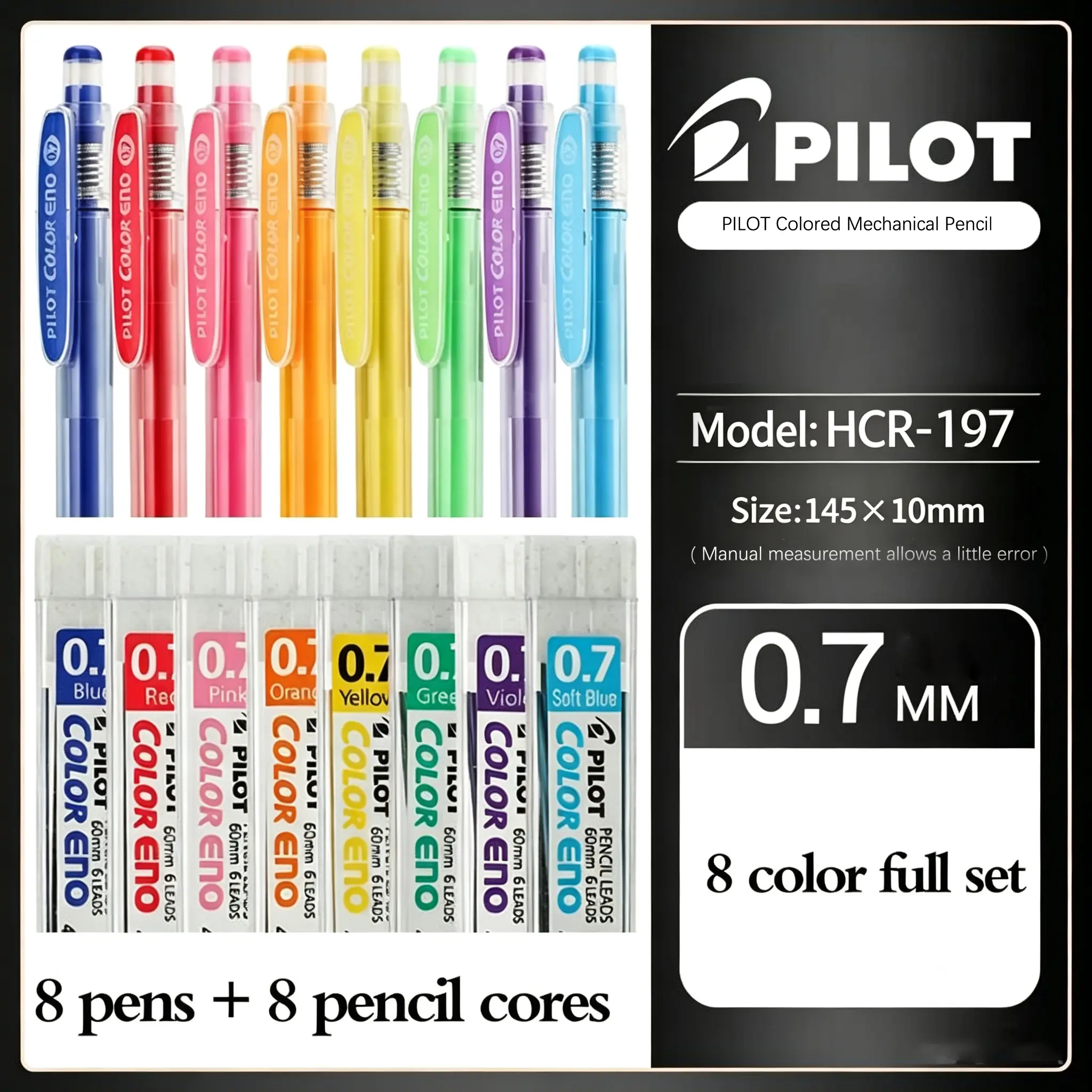 8Colors Japan PILOT Mechanical Pencil Set HCR-197 Colored Lead Core 0.7mm Student Drawing Pencil Sketch Manga Cute School Supplies