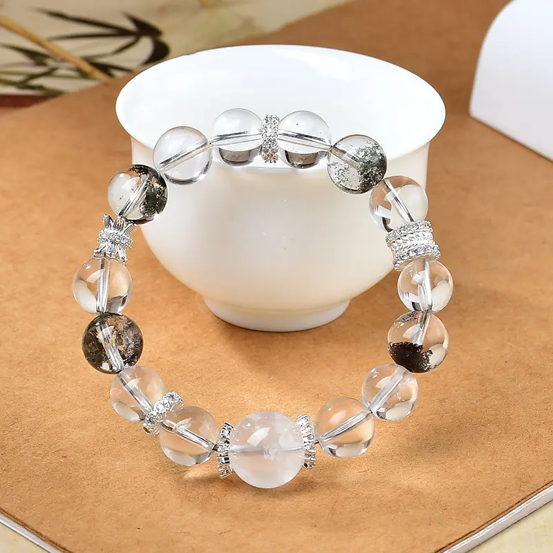 5. White Phantom + Green Phantom Clear Quartz Bracelet | Cleanse Negative Energy & Manifest Abundance