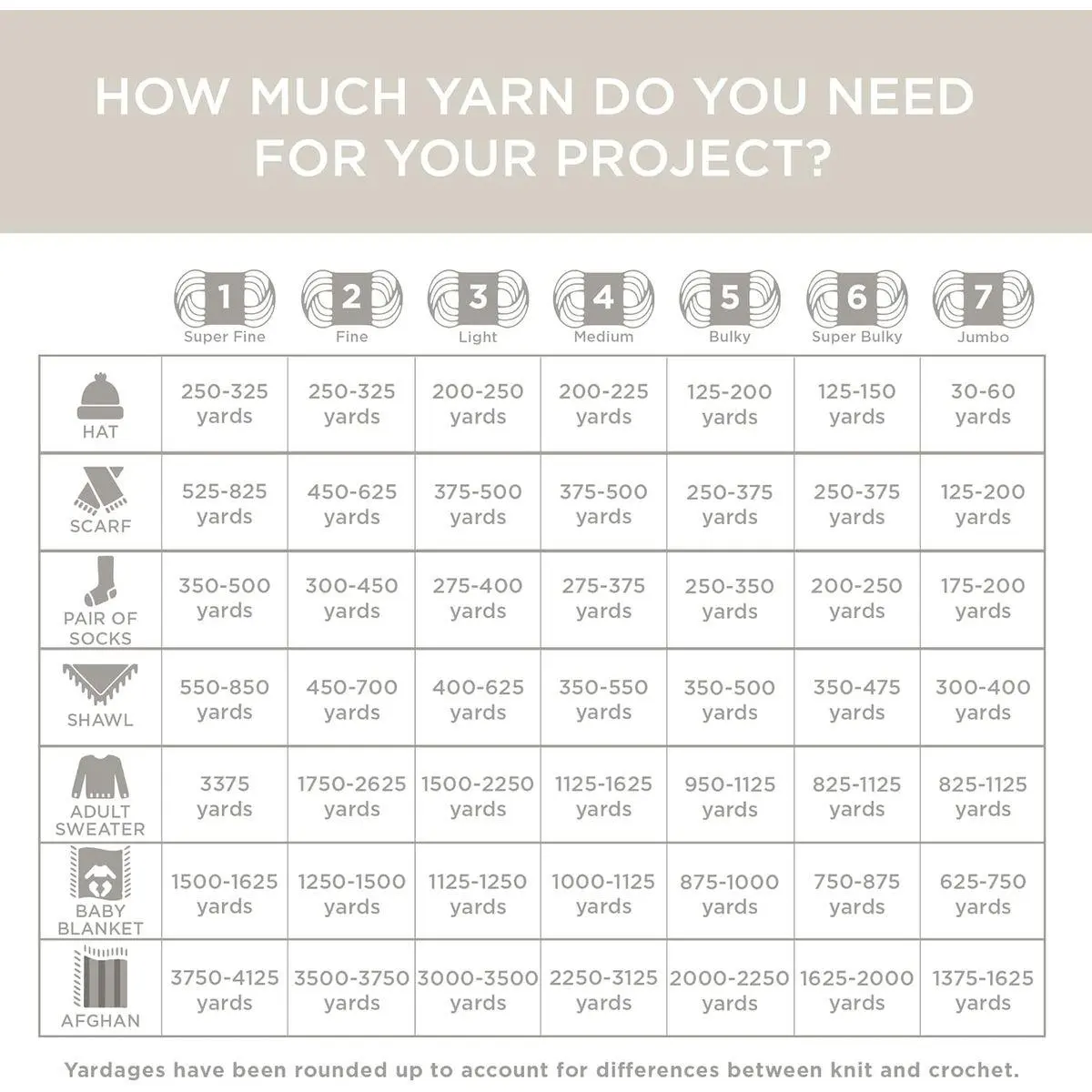 CRAFT & CROCHET YARN: Each skein of this gorgeous, thin yarn weighs 3.5 oz./100g (2.8 oz/80g in prints/sparkles) and is 273 yd/250m (219 yd/200m in prints/sparkles) long, making it great knitting and crocheting yarn for all your projects!