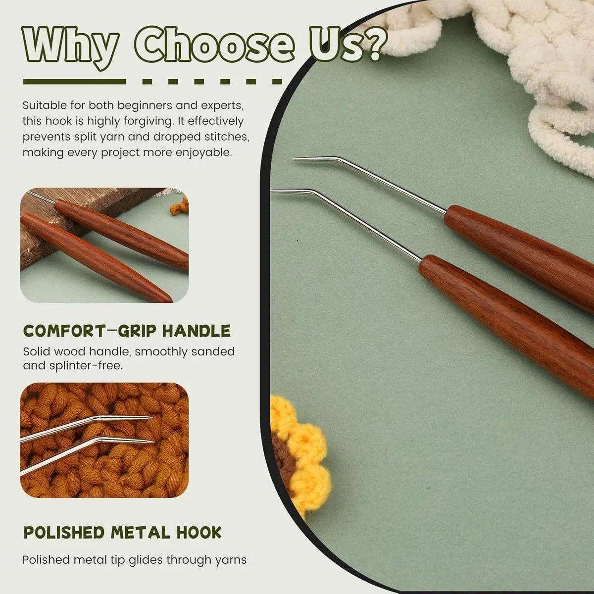 Comfortable grip sleeve: The cushioned grip of the wooden handle allows you to enjoy crocheting for hours on end without feeling uncomfortable or tired.