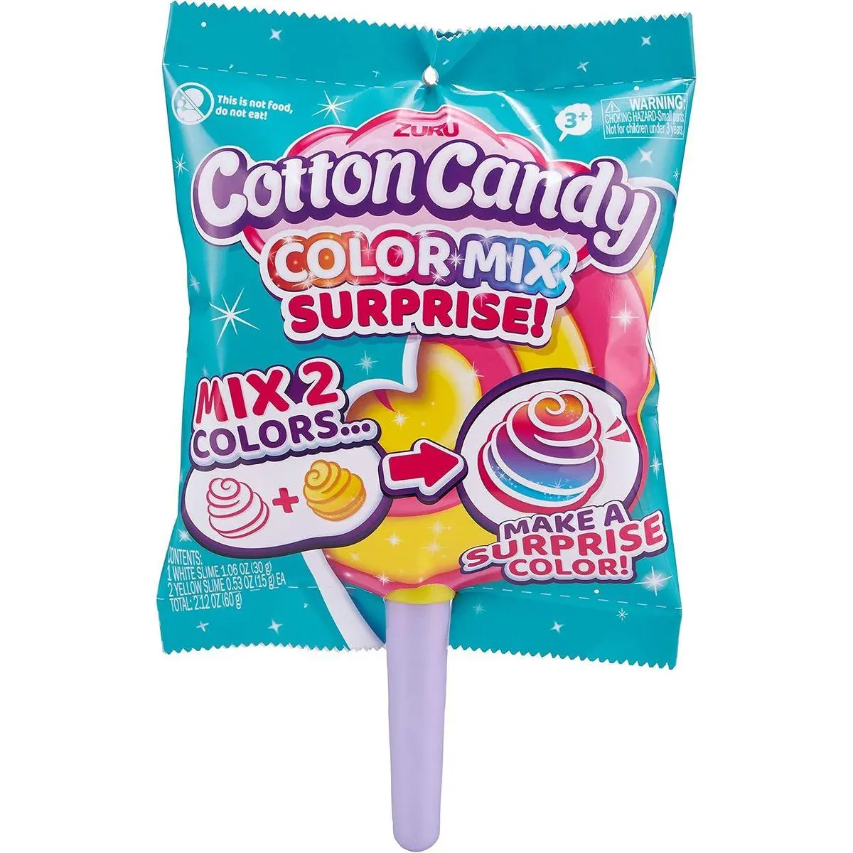 DOUBLE THE FUN: Inside each lollipop you will find one bag of the white cotton candy base and 2 bags of yellow cotton candy to mix. Each yellow bag will reveal a different color.