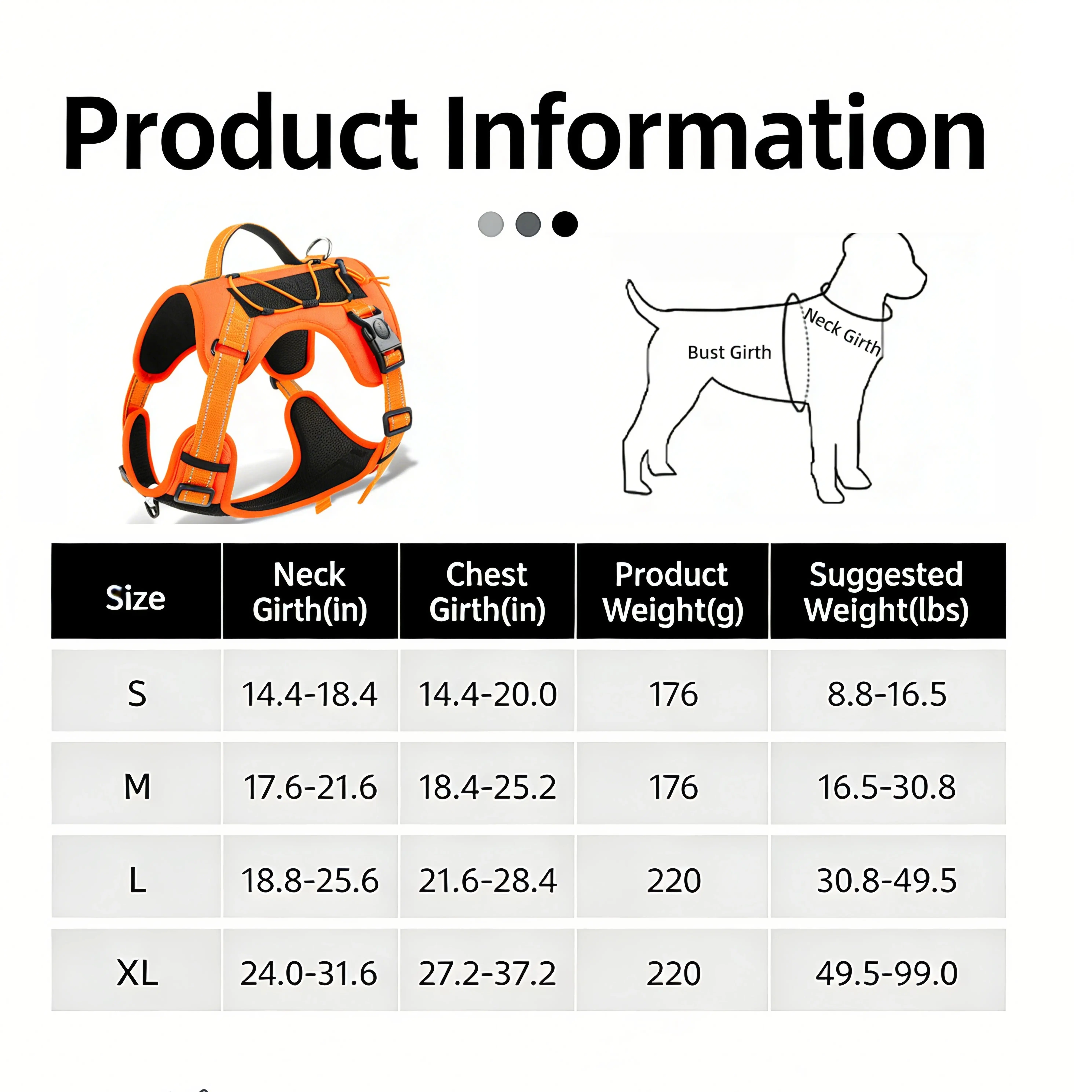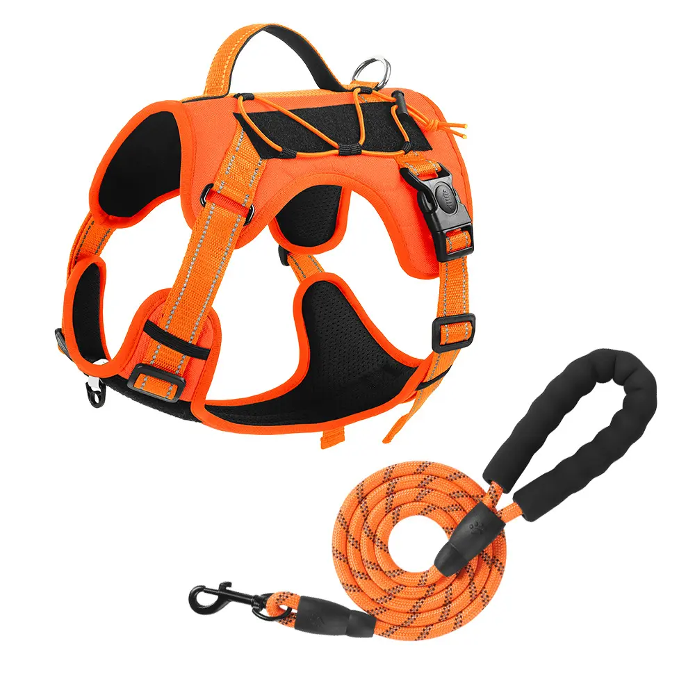 Tactical Dog Harness, No Pull Dog Harness with Leash, Lightweight Adjustable Dog Vest Harness for Small Medium Large Dogs, Reflective Escape Proof Dog Harness with Handle, Breathable Dog Harness for Training, Walking, Hiking, Outdoor, Protect Dog's Sternu