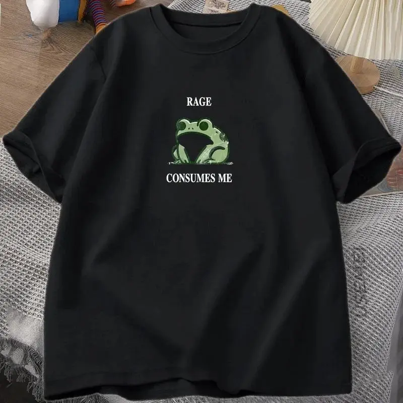 Rage Consumes Me Frog Vintage T Shirt Women Nature Lover Silly Frog Retro T-Shirt Cotton Short Sleeve Top Graphic Letters Printed