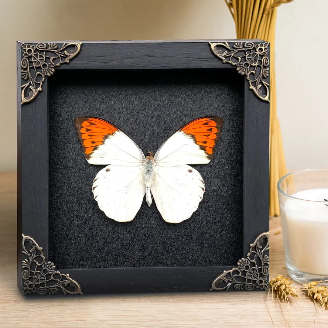 Great Orange Tip Butterfly, Shadow Box Display, Curio Cabinet Accent, Dark Academia Gothic Decor, Unique Collector Gift
