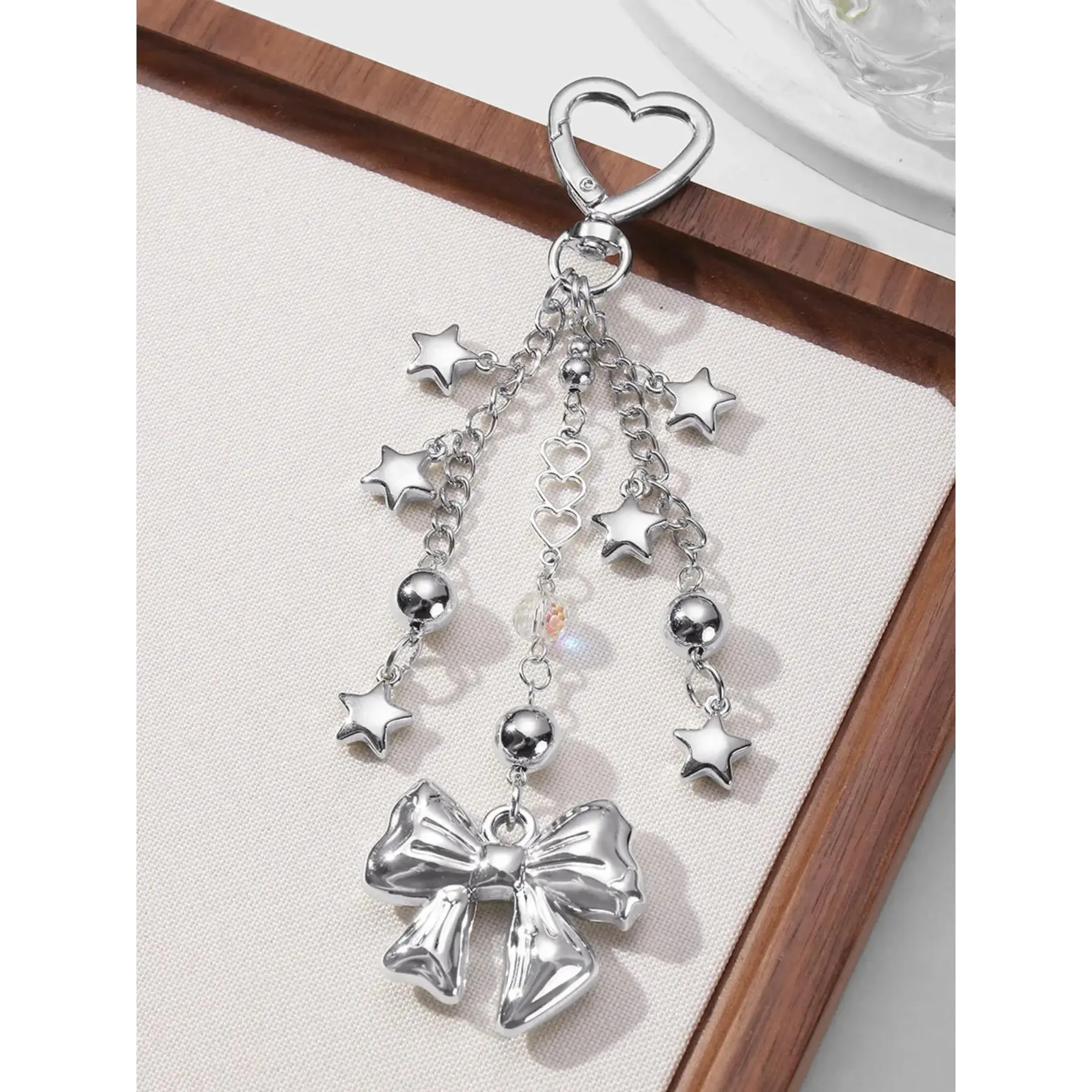 Sweet Cool Fashion Resin Bead Heart Star Charms DIY Keychain, Cute Bow Design, Perfect for Bag and Key Decoration, All Seasons Accessory