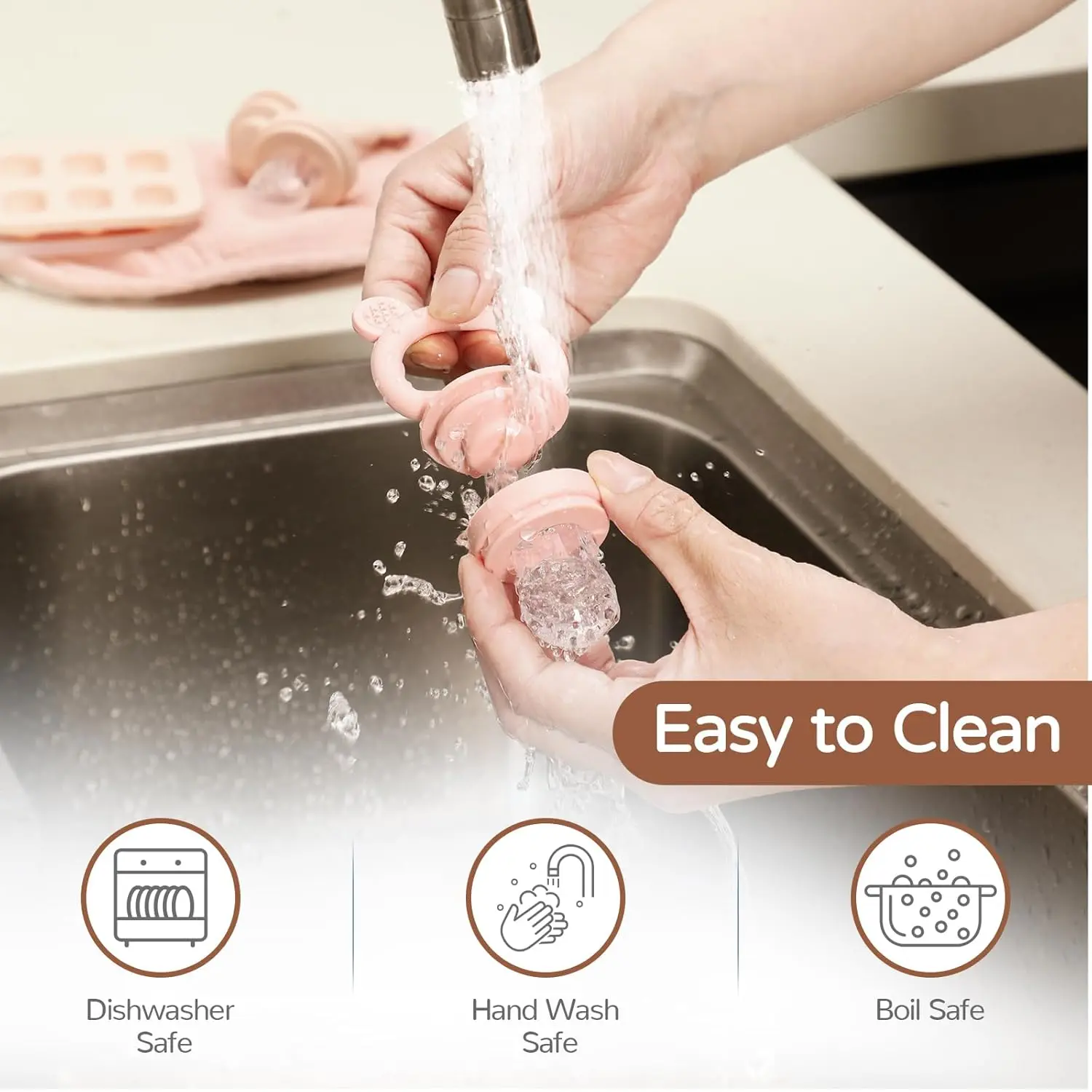 Designed for baby teething relief and self-feeding. The silicone material is safe and easy to clean. Perfect for fresh food feeding. Enhance your baby's feeding experience with this set. 🍼