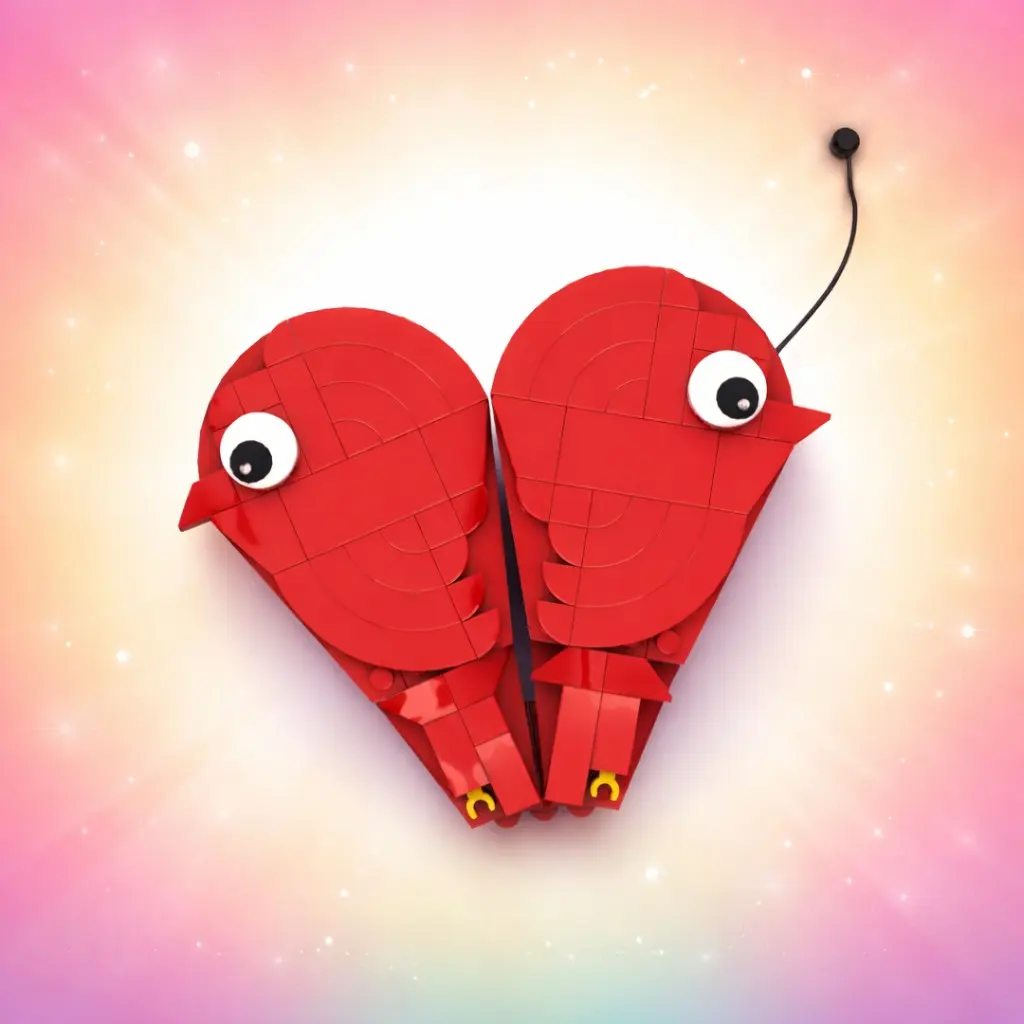 MOC 113PCS Pair of Red Birds Building Blocks Set, Durable ABS Plastic Bricks Toy, Love Couple Face to Face Meaning, Friendship Back to Back Meaning, DIY Easy Assemble Buildable Bird Figure Model, Desk Display Collectible Ornament
