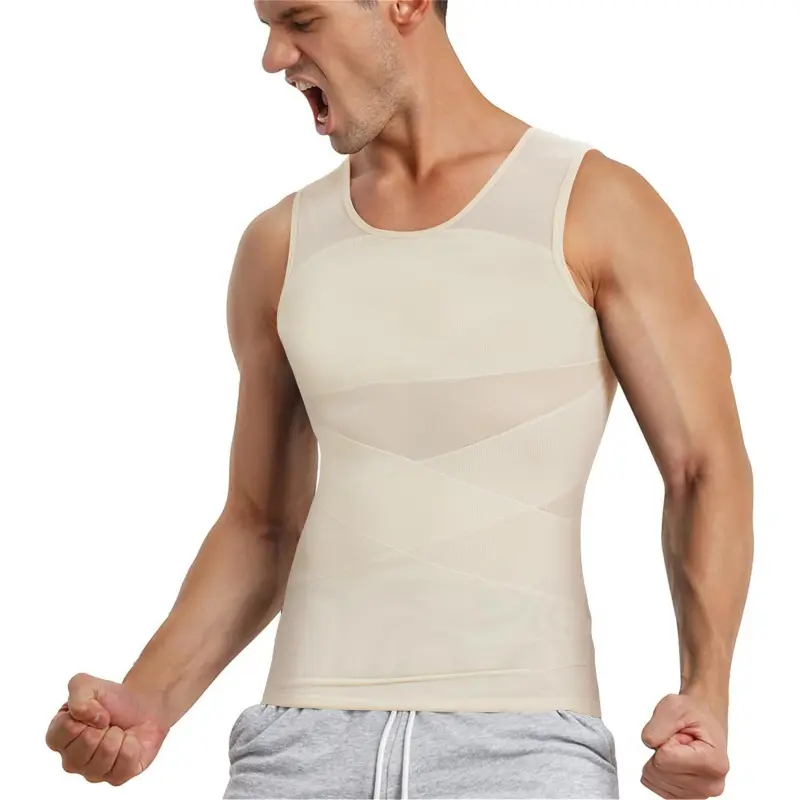 Men's Slimming Vest High-Elastic Mesh Thin Chest Shaper Tummy Control Top