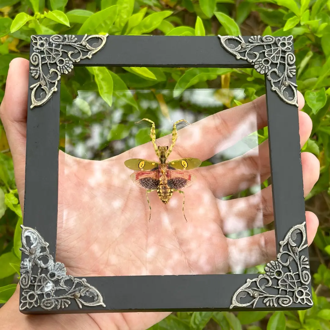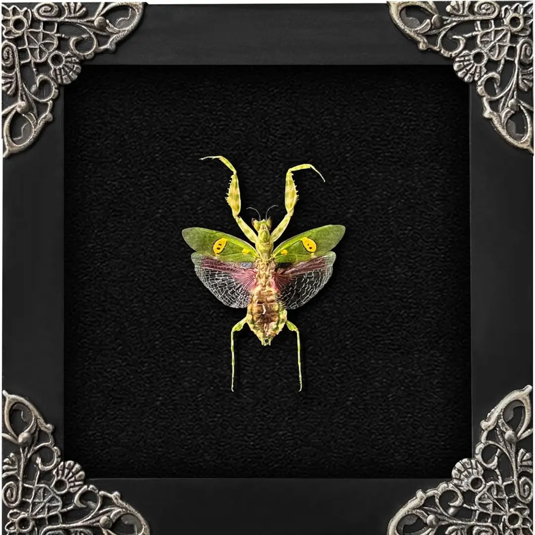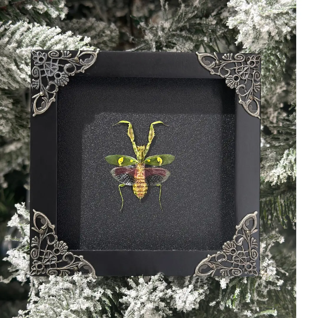 Framed Flower Mantis, Dried Insect Green Mantis, Shadow Box Black Frame, Bug Art, Oddity Curiosity Decor, Tabletop Stand, Wall Hanging, Home Accent