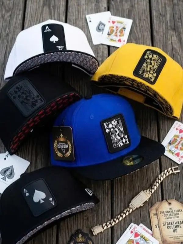 This snapback hat features a unique Ace & King playing card patch, perfect for streetwear enthusiasts. The flat brim design adds a stylish touch to any outfit. Ideal for men and women, it offers an adjustable fit for comfort. Whether you're traveling or playing sports, this hat is a versatile accessory.