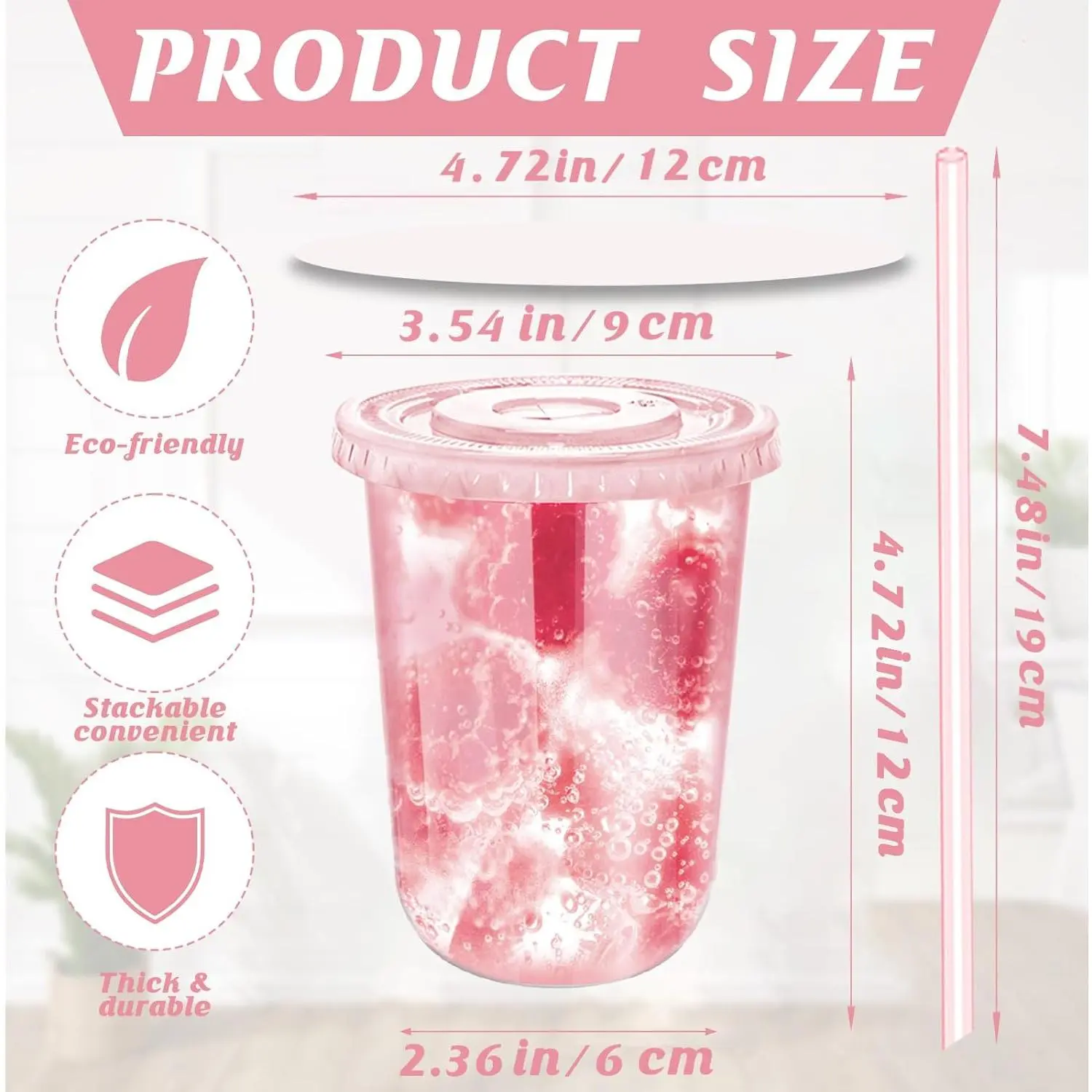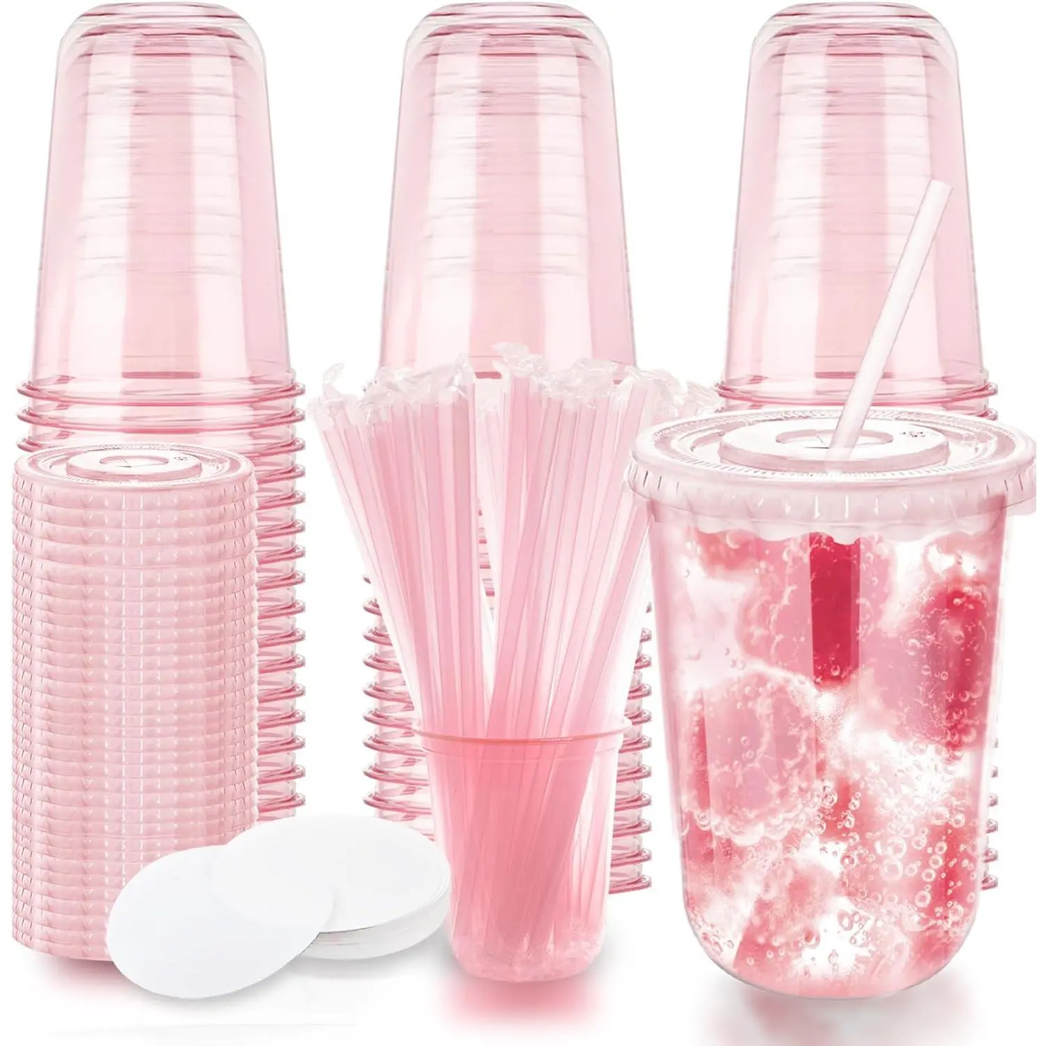 Bulk package: This set contains 50sets plastic cups to meet most of your needs at parties, picnics and other events. The ideal container: This clear plastic cup is suitable for drinks and fruit. With transparent surfaces and lightweight surfaces, your food and drinks will display in good shape. Specifications: Material: PET Color: Transparent Size :500 ml / 16 oz The package includes: 50sets cups Note: Manual measurement, please allow a slight error in size. There may be slight differences in color due to different screen displays.