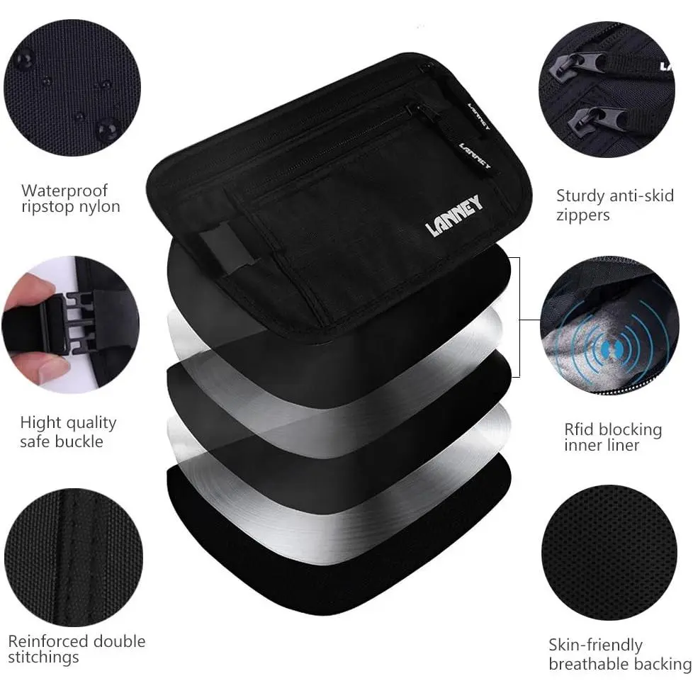 Nowadays many personal items have RFID-scannable chips.Radio Frequency readers gather data and extract digital from credit cards, debit cards, personal IDs, electronic chip passport and similar items.Without properly securing these items, information can be easily scanned without physical reach and owner's knowledge.LANNEY money belt has built in RFID blocking linings that block those RFID signals from being transmitted.Money belts are your key to peace of mind.You never travel without one.It’s wise to make the small investment in a travel money belt today!