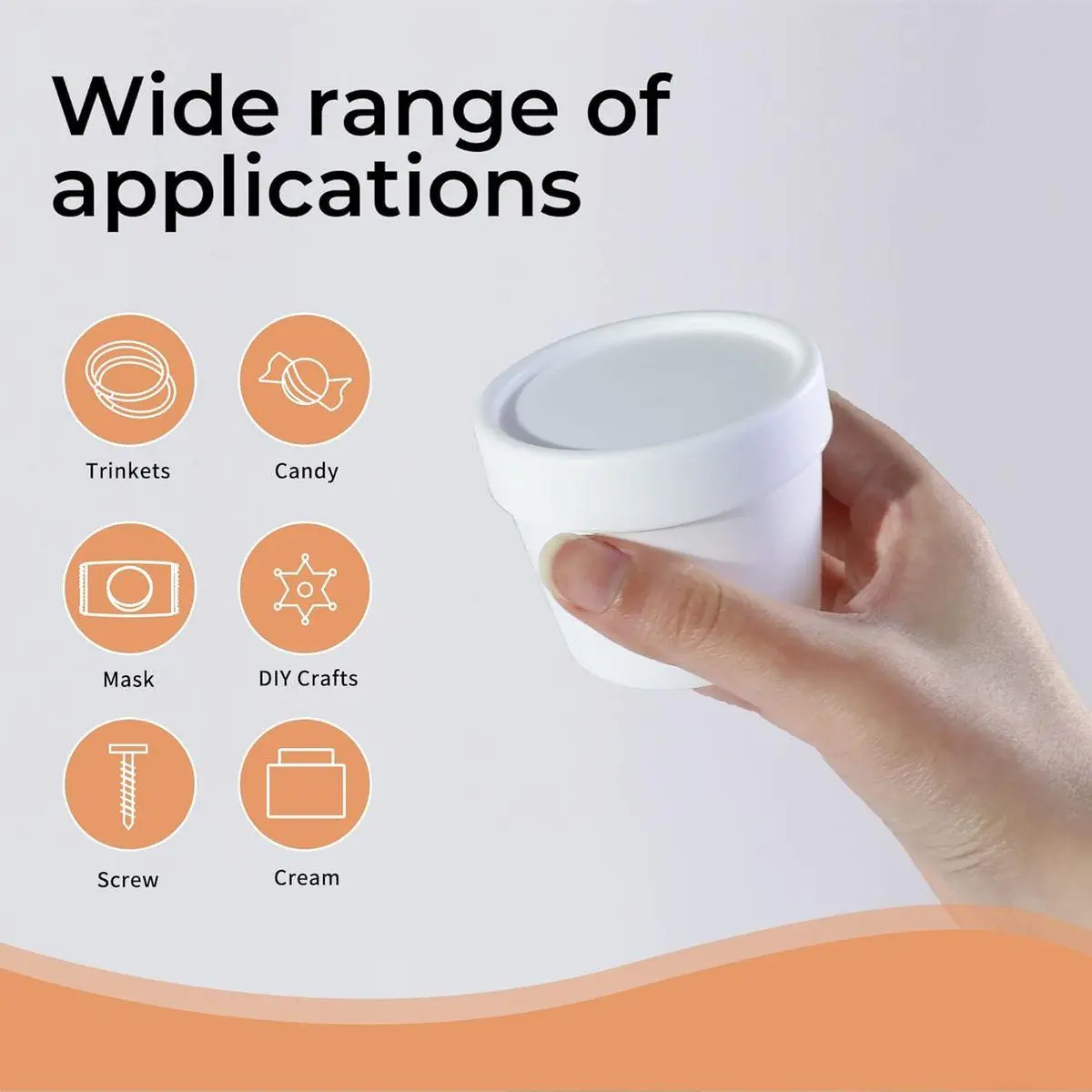 USAGE:Perfect plastic containers for storing your homemade cosmetic, body lotion, moisturizers, face masks, gel, ointments, specimen collection, putty, lotions, fragrances, DIY slime, party favors, or other crafts, good tools in daily life.