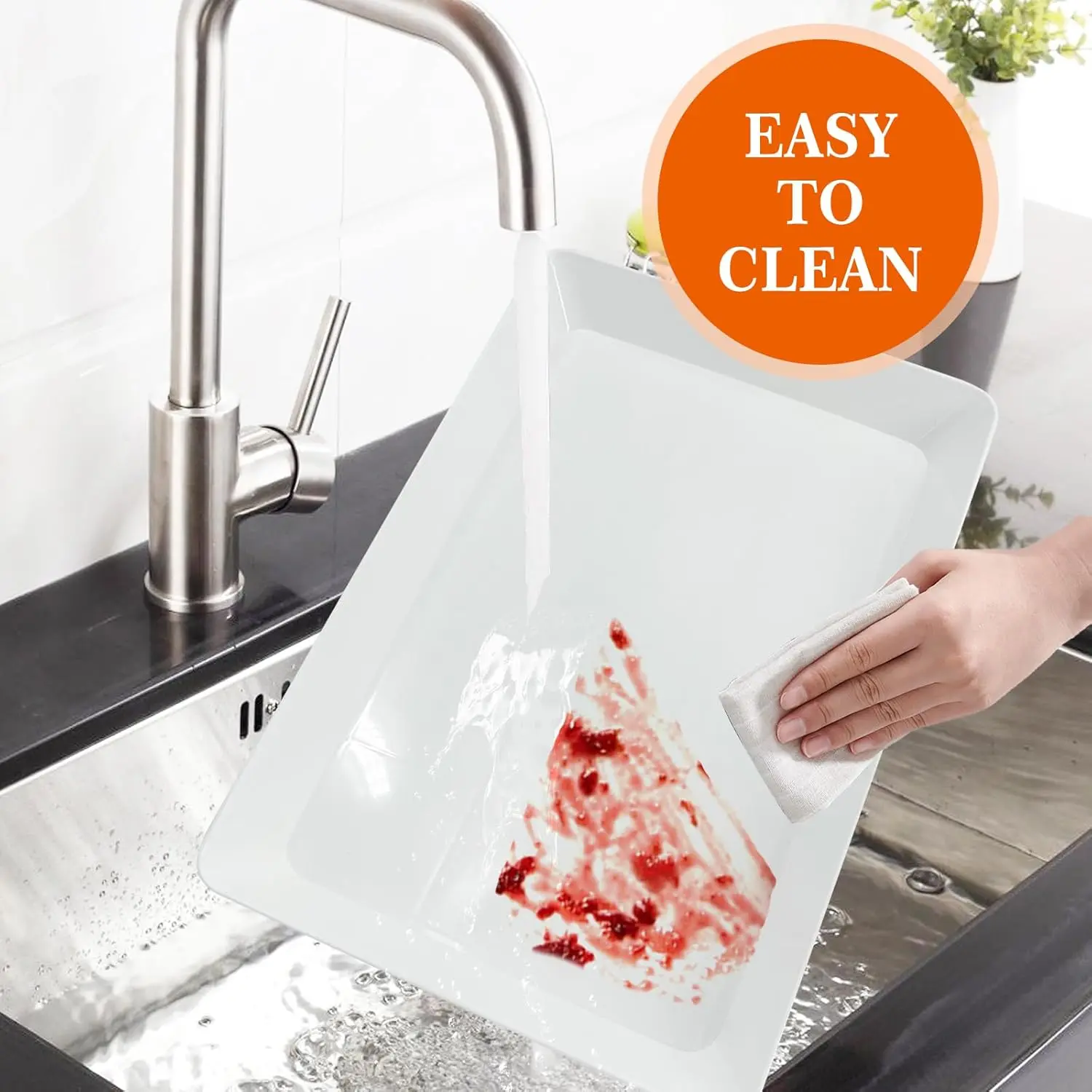 This shatter-resistant serving tray is durable, reusable,Stackable party platter, BPA - free, and features a thick construction made of sturdy (PP) plastic material that resists damage, and ensures long - term use in Home/Restaurant/Event Use and events.