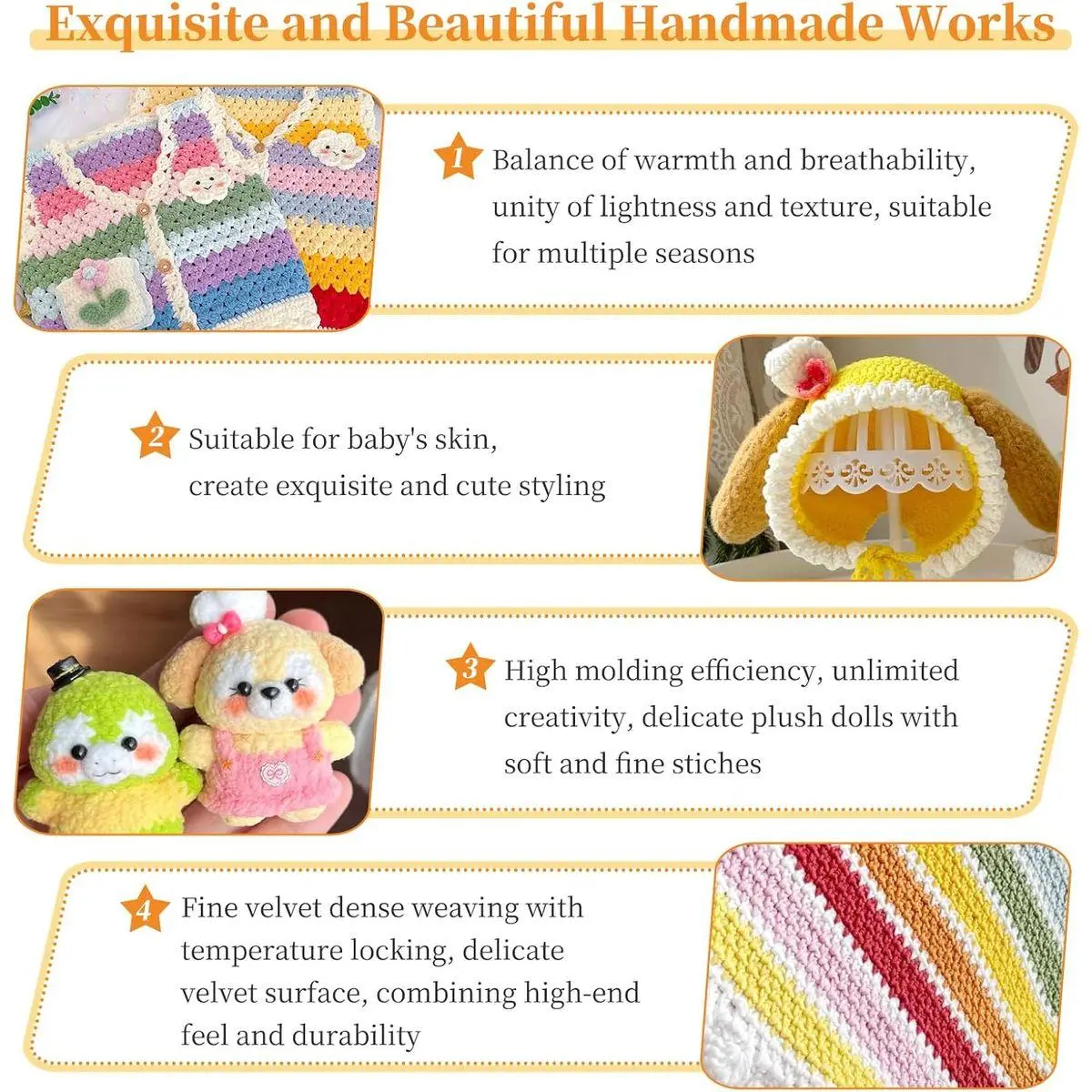 3. Versatile for Crocheting & Knitting: As a premium craft yarn for crocheting and soft yarn for knitting, it's comfortable plush texture of fluffy yarn suits various projects like dolls, scarves, blankets, pillowcases, home decorations and more. Ideal 2.5mm light dk weight yarn. Compared to other yarns, it's softer and warmer; compared to thick yarn, it's lighter and easier to carry—balancing comfort and portability perfectly