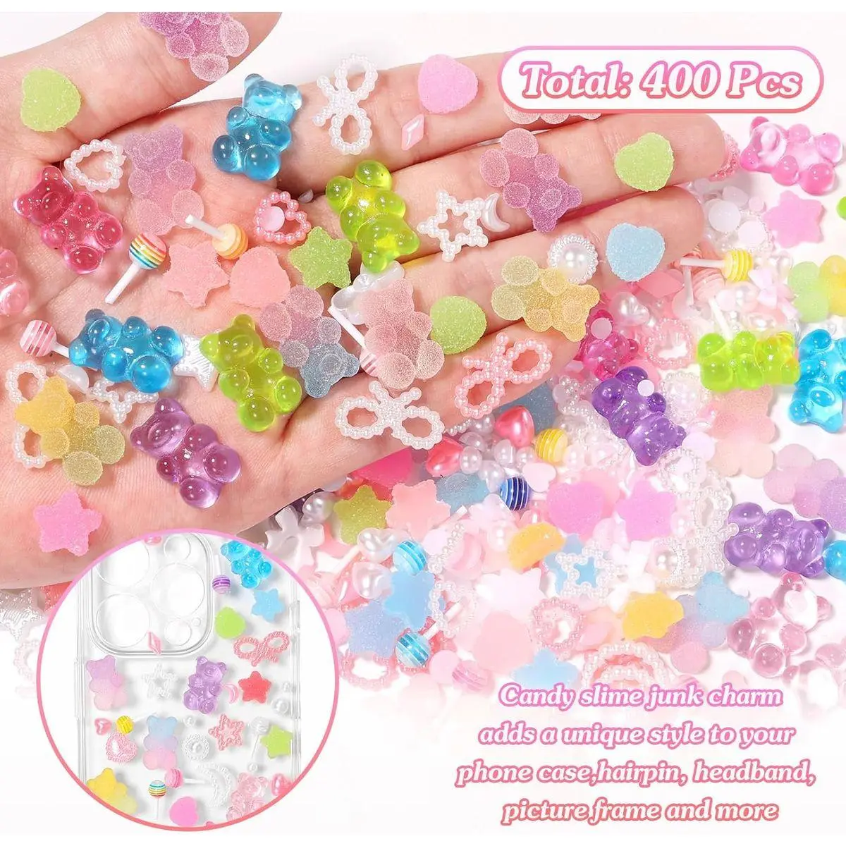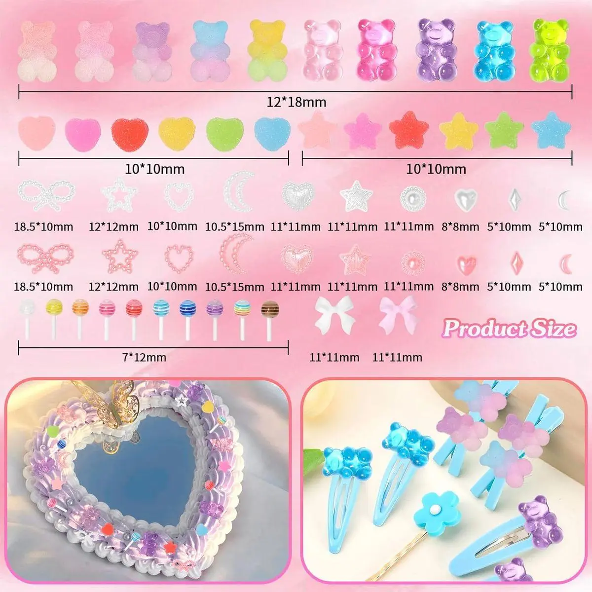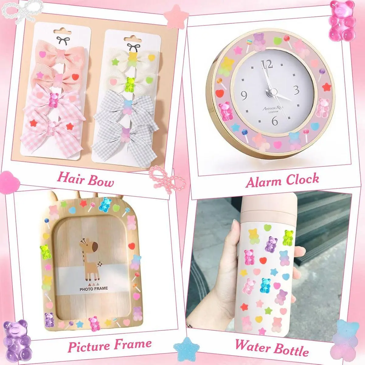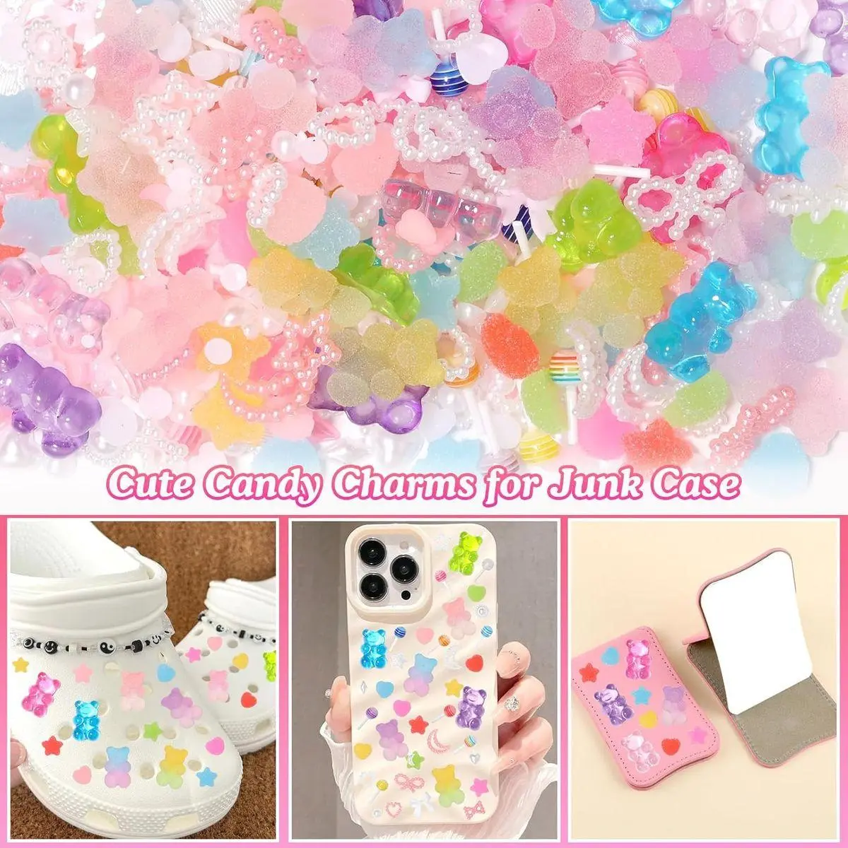 Gummy Junk Case Charms: The color bear resin charms set includes pink, red, purple, blue, green. You can mix and match the color gummy bears, lollipop candy and pearls bows star heart charms, to create your unique and personalized crafting design