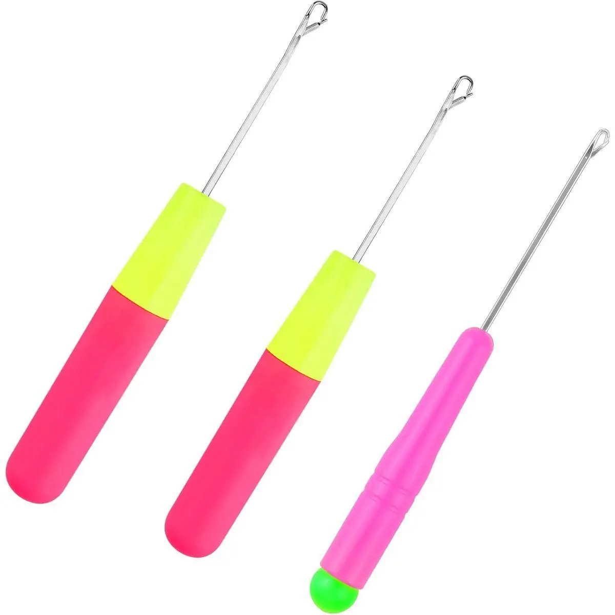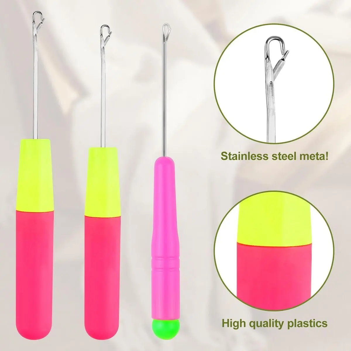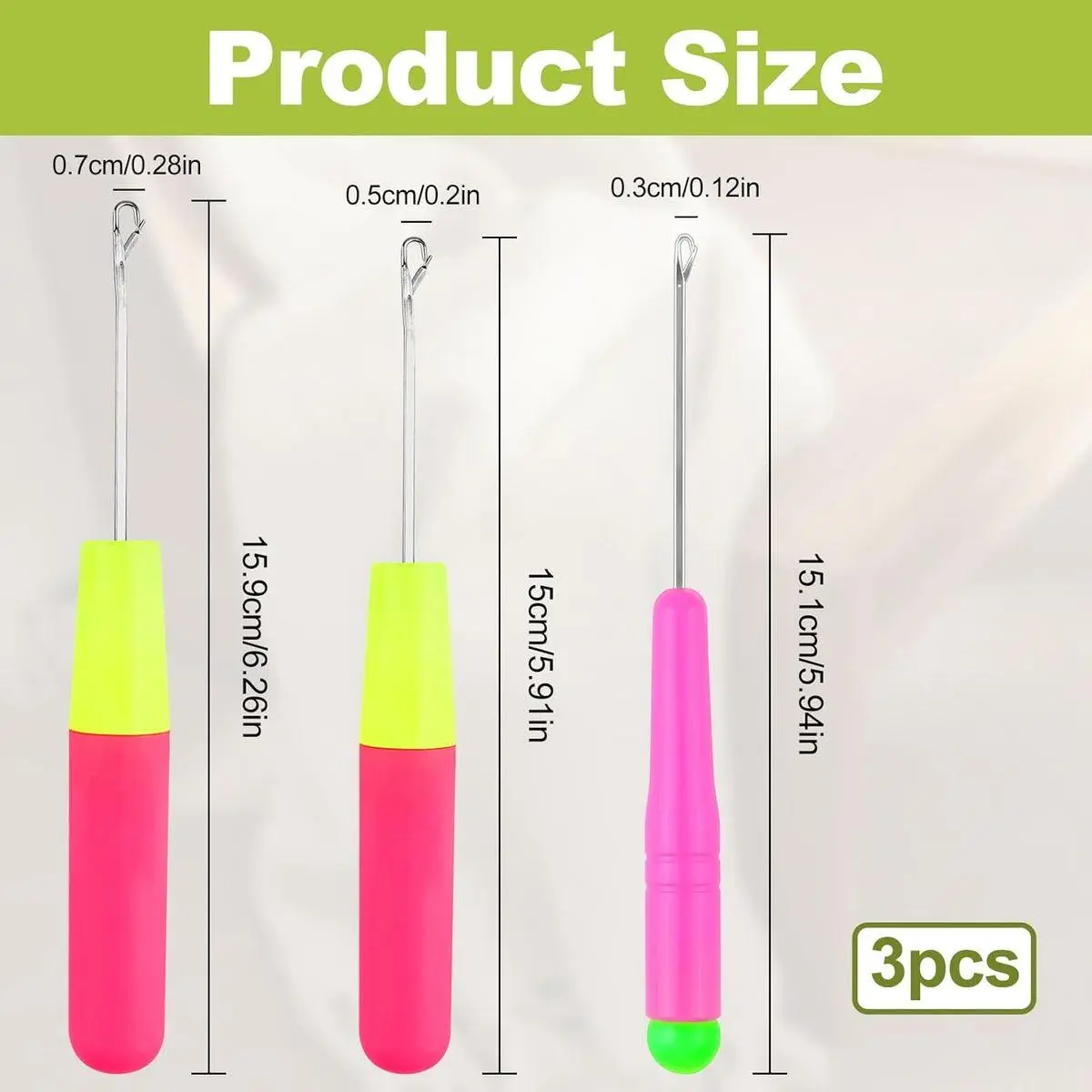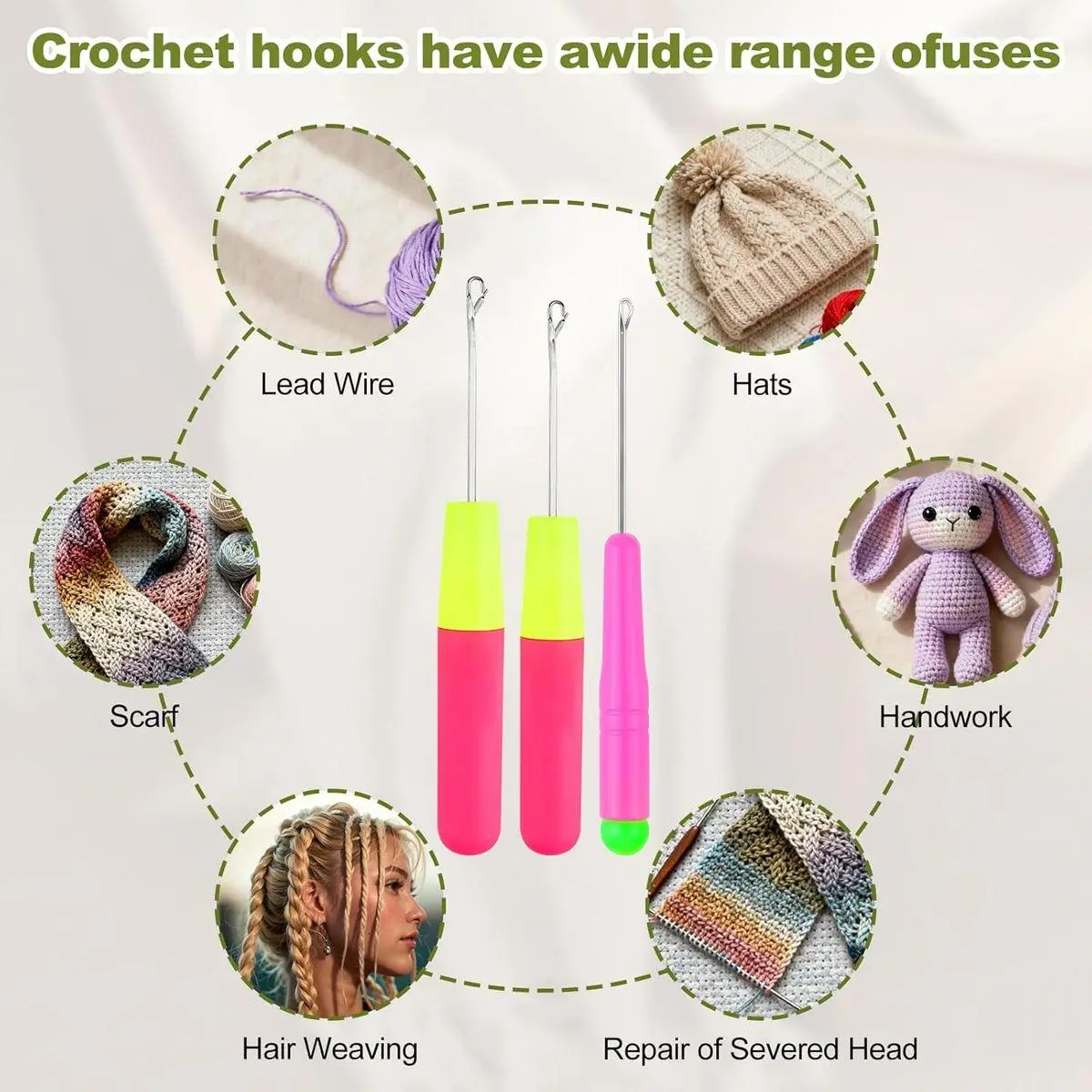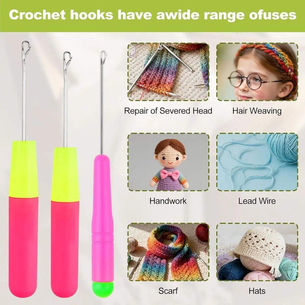 Unique Design: The crochet hooks for hair stands out with its differentiated design—three distinct sizes (3MM, 5MM, 7MM) meet varied project demands, and the 3MM hook’s red body with green tail adds a playful, eye-catching touch that inspires creative crafting; the ergonomic plastic handles fit comfortably in most hands, distinguishing these tools from ordinary hooks and making them ideal as latch hook needle crochet serging hook for both beginners and experienced crafters