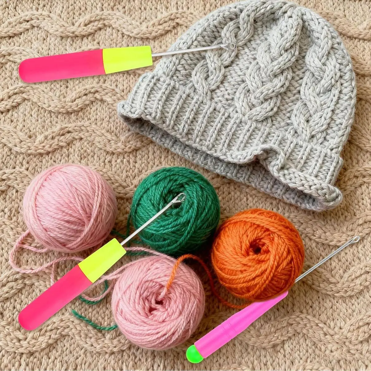 Material: Each latch hook tool features a metal head (for smooth yarn gliding) paired with a sturdy plastic handle (for comfortable grip), ensuring the crochet hooks for hair is long-lasting and resistant to bending or wear; the metal heads maintain to easily catch and loop yarn, while the plastic handles prevent hand fatigue during extended use, making them reliable as crochet needle latch hook tool for frequent crafting