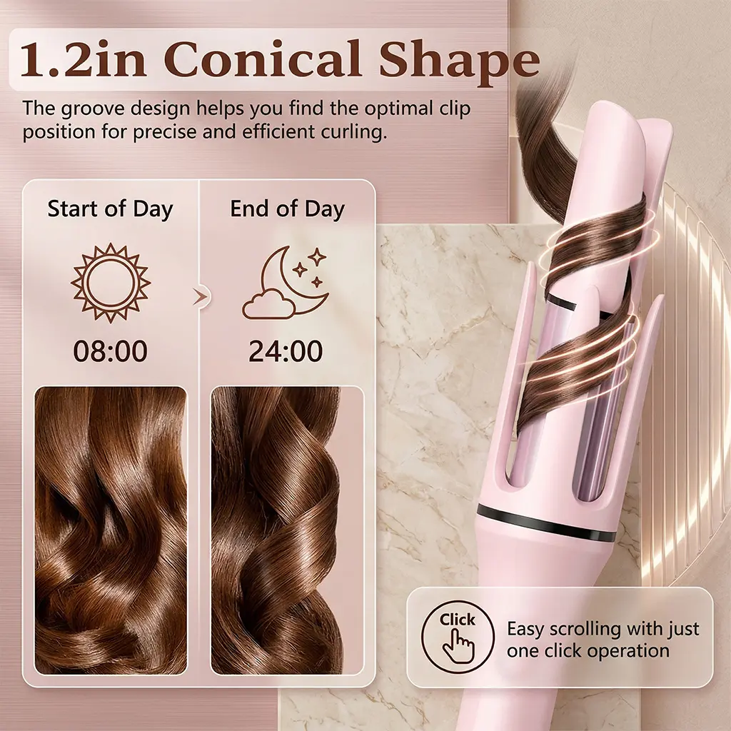 The automatic curling function helps wrap hair more easily, making styling simpler and more convenient for daily use.