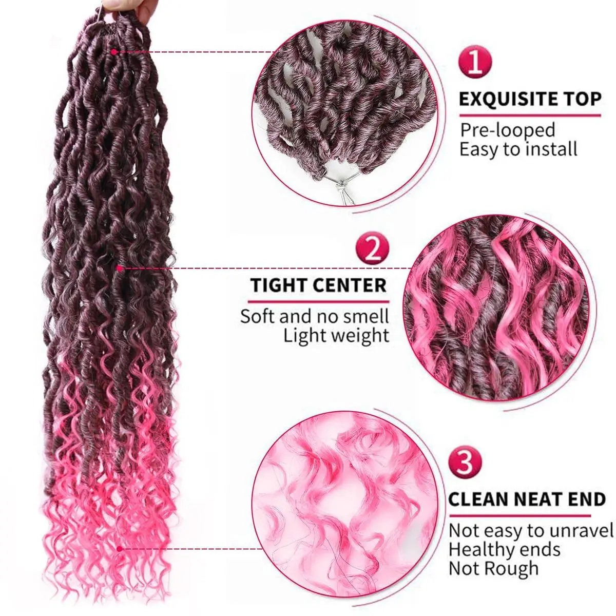 1.Material: Faux Locs Crochet Hair,Goddess Locs Crochet Hair, Crochet Locs, Faux locs Hair,Goddess Faux Locs, Crochet Hair Pre looped,Crochet Hair for Black Women,Crochet braids,curly crochet hair,locs crochet hair,Synthetic Hair Extensions