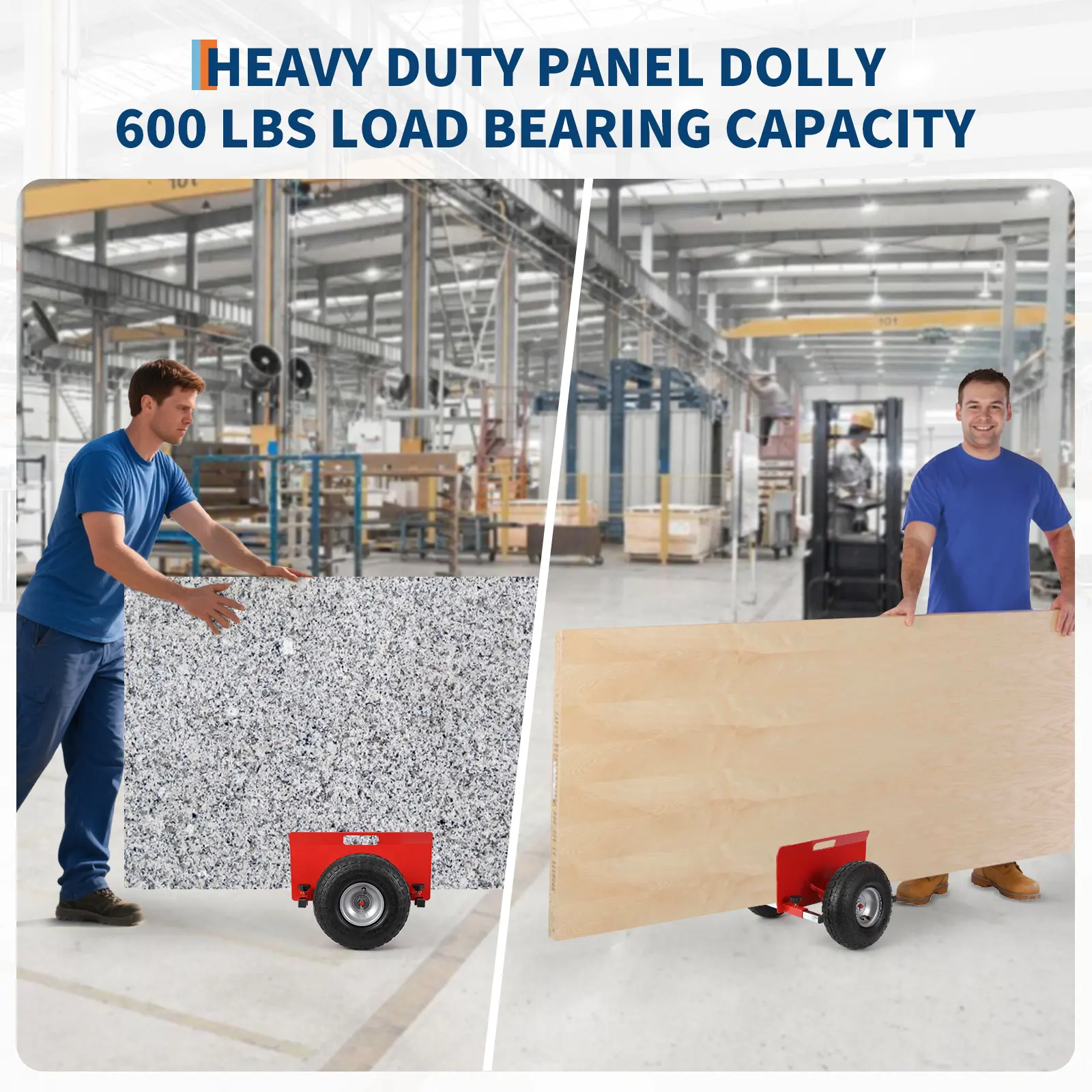 🛠️ Move drywall, doors, plywood, and large panels with less strain using an adjustable panel dolly with inflatable tires and secure clamping support