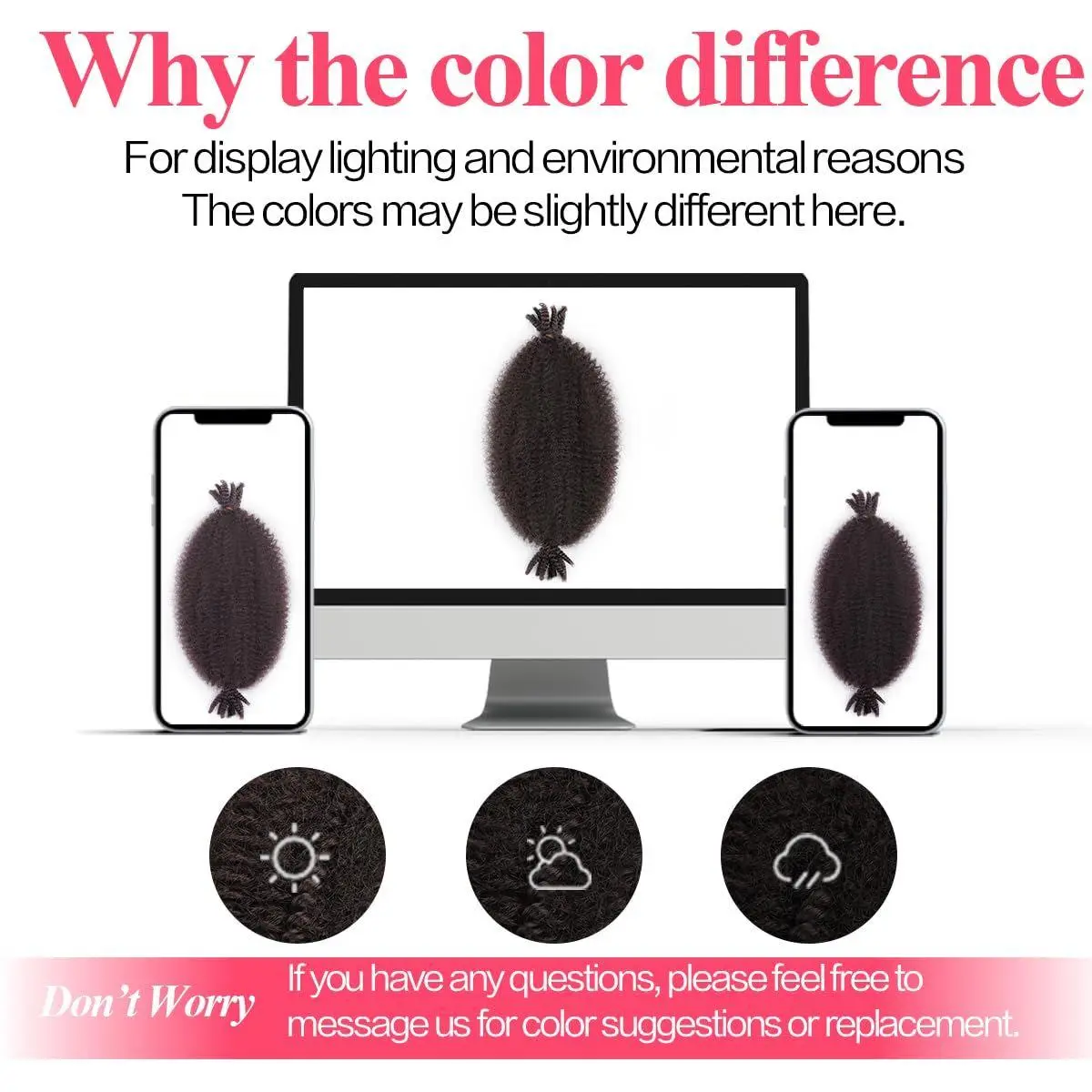 4.Washing & Maintenance :Just need a little mild shampoo and hair conditioner then washing in warm water, After washing thoroughly absorb dry with a towel ,Do not rub or roll the hair into the towel.