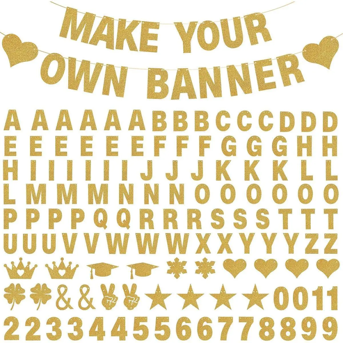 High Quality CUSTOMIZABLE HAPPY BIRTHDAY BANNERS KIT: Our personalized happy graduation banner are made of quality cardstock with glitter, they are reliable and not easy to fade or tear. This custom happy birthday letter banner is also to be saved so you can use these DIY banner kit with glitter black letters for a long time or your next party. There are different kinds of symbol signs such as crowns, hearts, stars, snowflake, doctoral cap,four-leaf clover,perfect decorations for different parties.