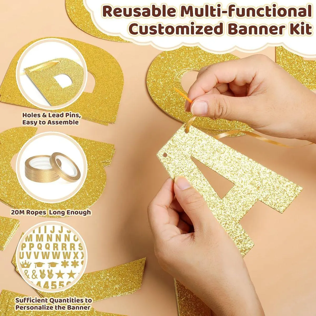 Easy to Install Black Customizable Banner Kit with Letters: These custom happy birthday banner letters are easy for you to use, there are hole on each black glitter letter, numbers and symbols, you can use the needles to string them on the black rope and then hang them. Enough quatlity of our diy banner kit to make your own banners personlized. Besides, there are 4 pcs of ropes, long enough for you to hang your personalized happy birthday banner with name or theme anywhere.