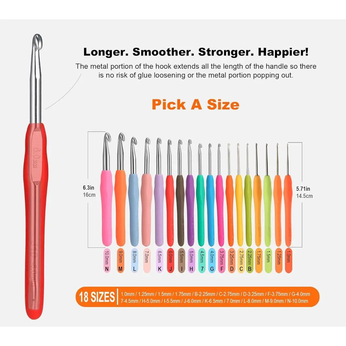 Well-grip and No Pain: The extra-long ergonomic silicone rubber handle gives your hand a comfortable grip, making your crocheting easier, faster, and happier