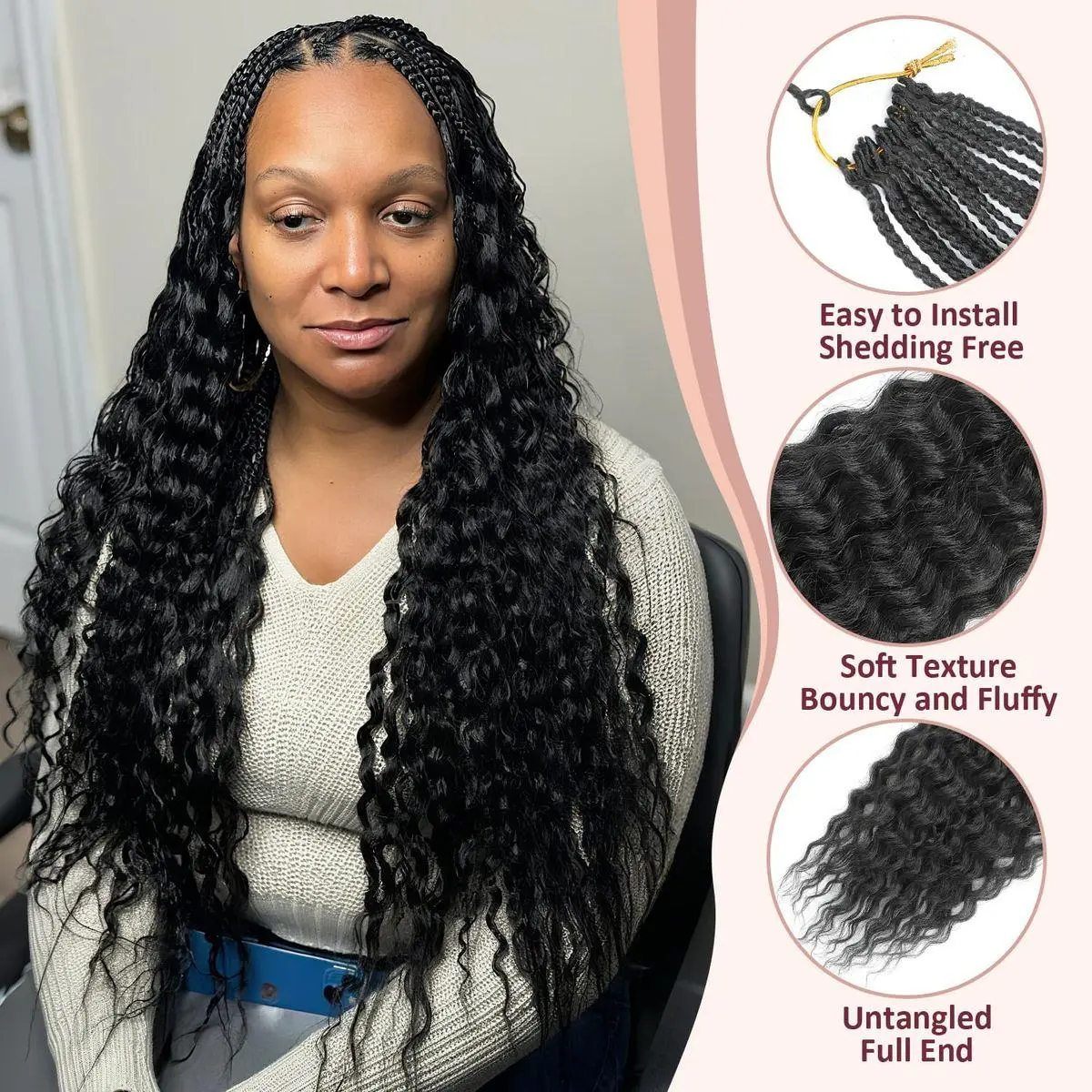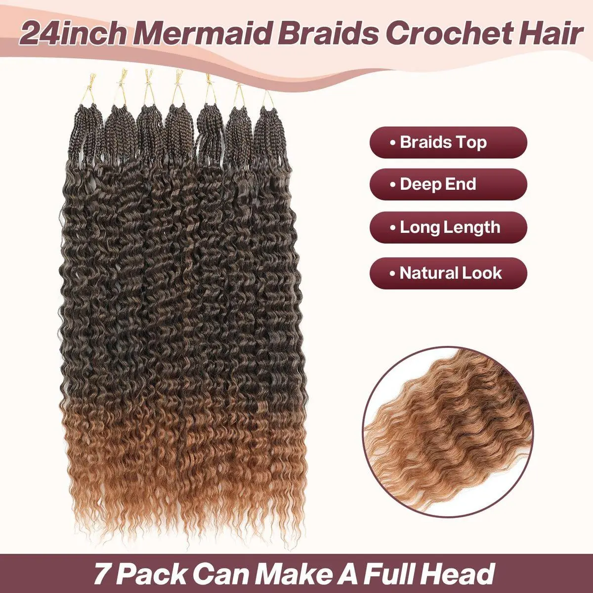 Hair Install:Our new mermaid briads crochet hair the top is a short section of braids and deep wave curly ends. It’s no tangle, if you are more worried about this, please rest assured.It’s perfect for beginners looking for a stress-free way to achieve beautiful curls.