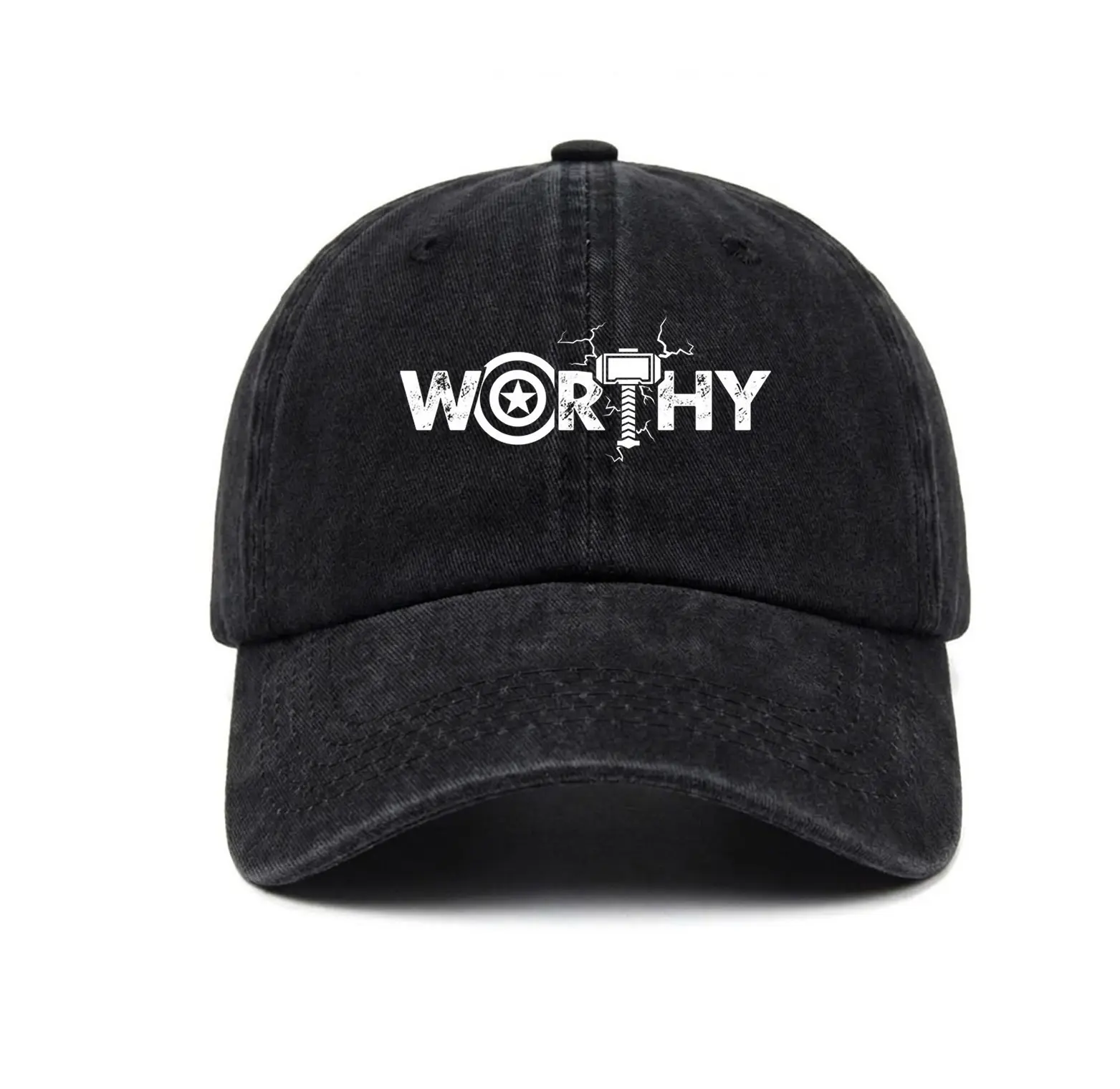 Vintage WORTHY From The Strongest Avenger Printed Wash Hat, Washed Baseball Cap streetwear , Gift For Him Her, Funny Movie Hat