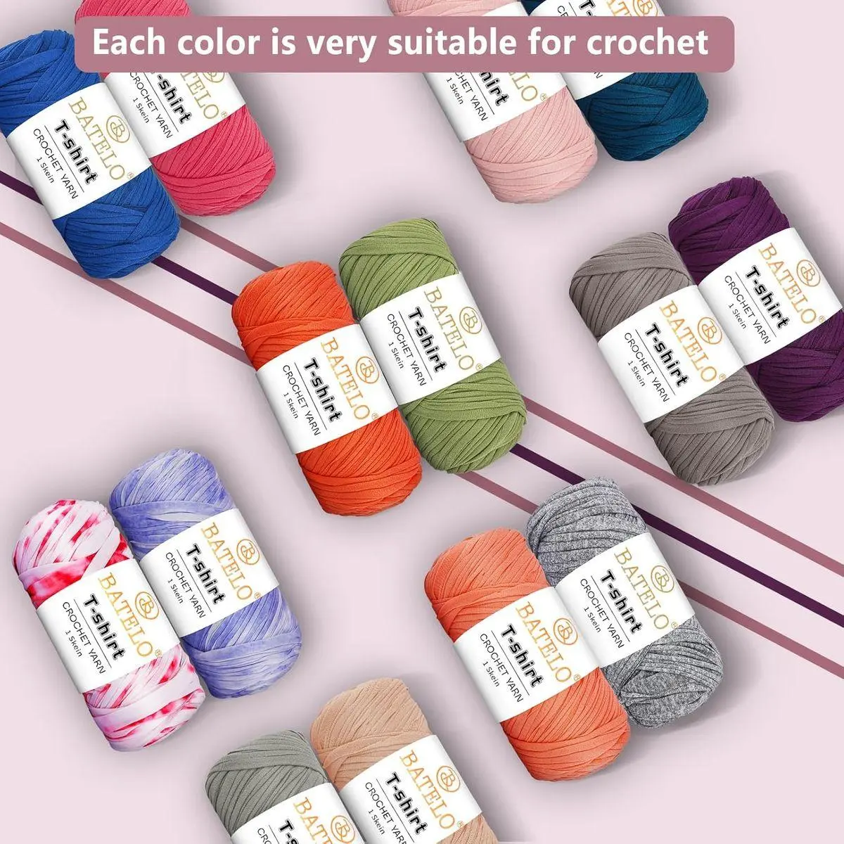 (Material) BATELO T-shirt yarn is crafted from 100% polyester, renowned for its elasticity, resistance to pilling, and ease of crocheting. Whether you're a beginner or an experienced crocheter, you'll find working with this fabric a breeze. Moreover, its comfort makes it ideal for a wide range of projects.
