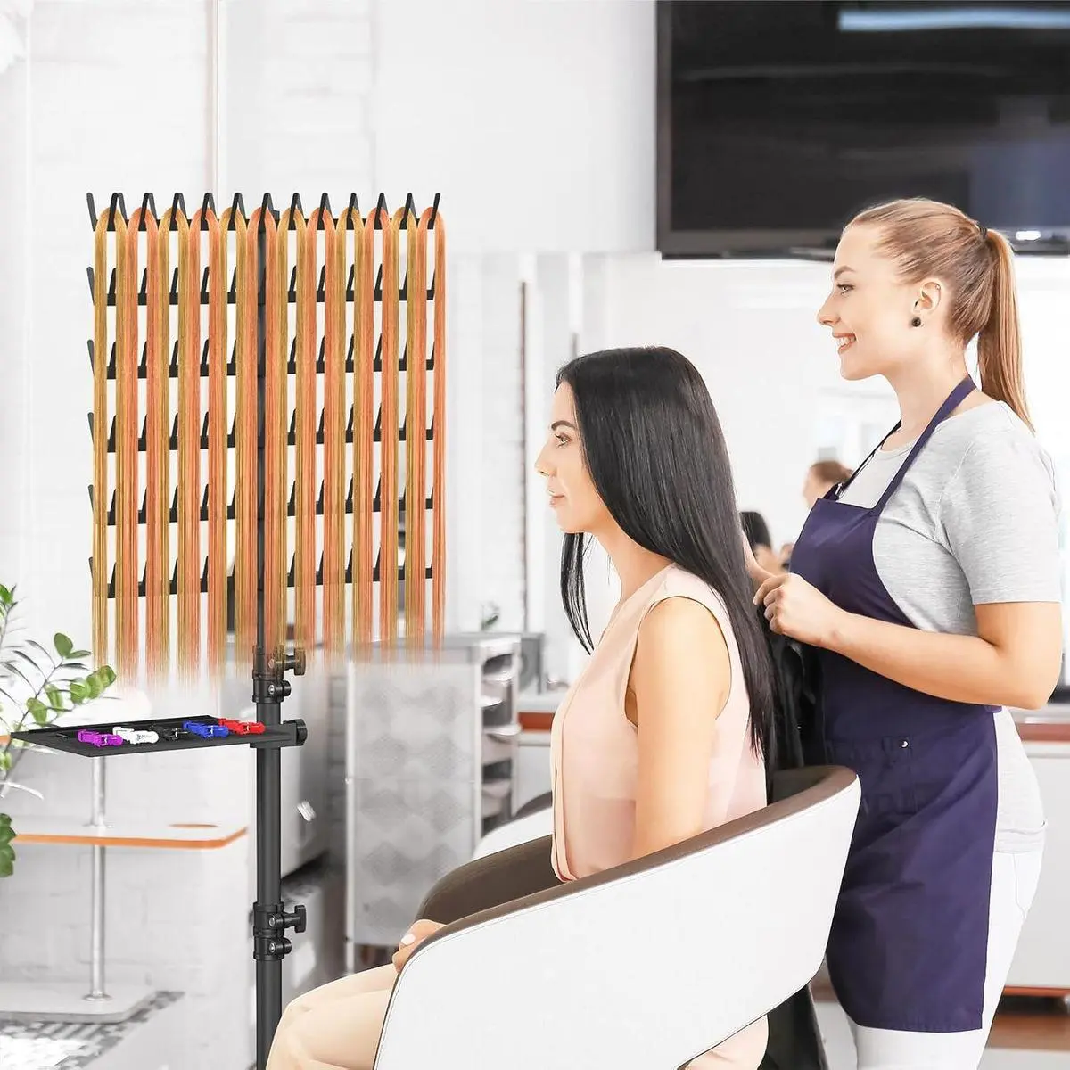 Braiding Rack with Tray - The braiding hair rack is equipped with a removable tray specially designed for placing braiding tools or salon supplies. All tools are placed within easy reach, making it more convenient for you to braid during the process.