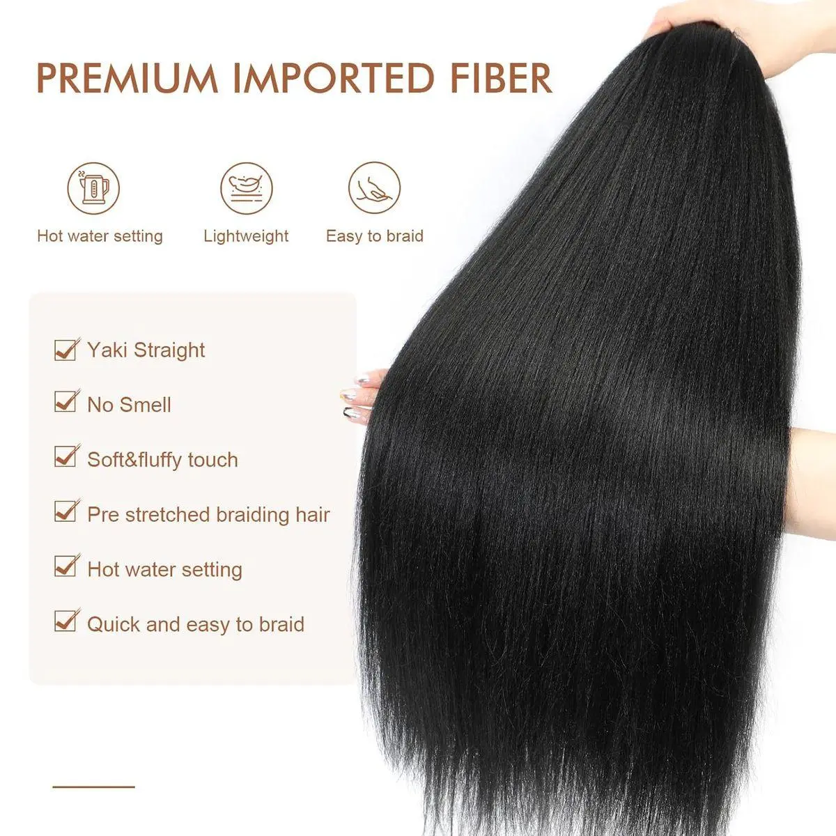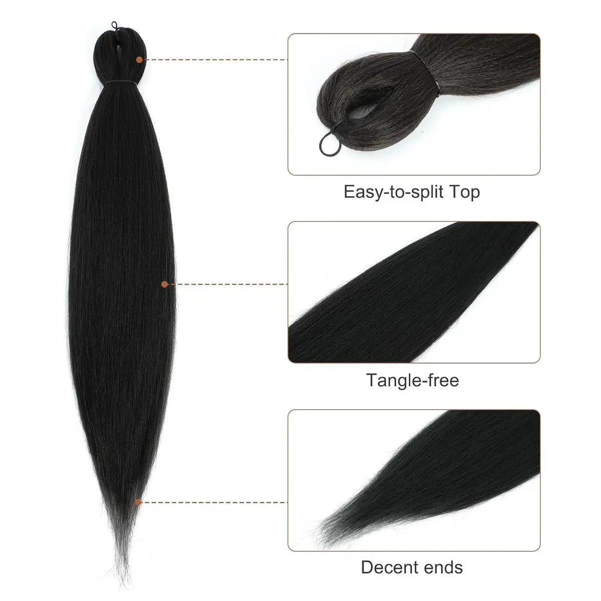 1.Hair Material: Our Pre-Stretched Braiding Hair Is Made Of High Quality Low Temperature, Flame-Retardant Yaki Texture Synthetic Fiber. Natural Looking, Super Soft & Skin-Friendly.