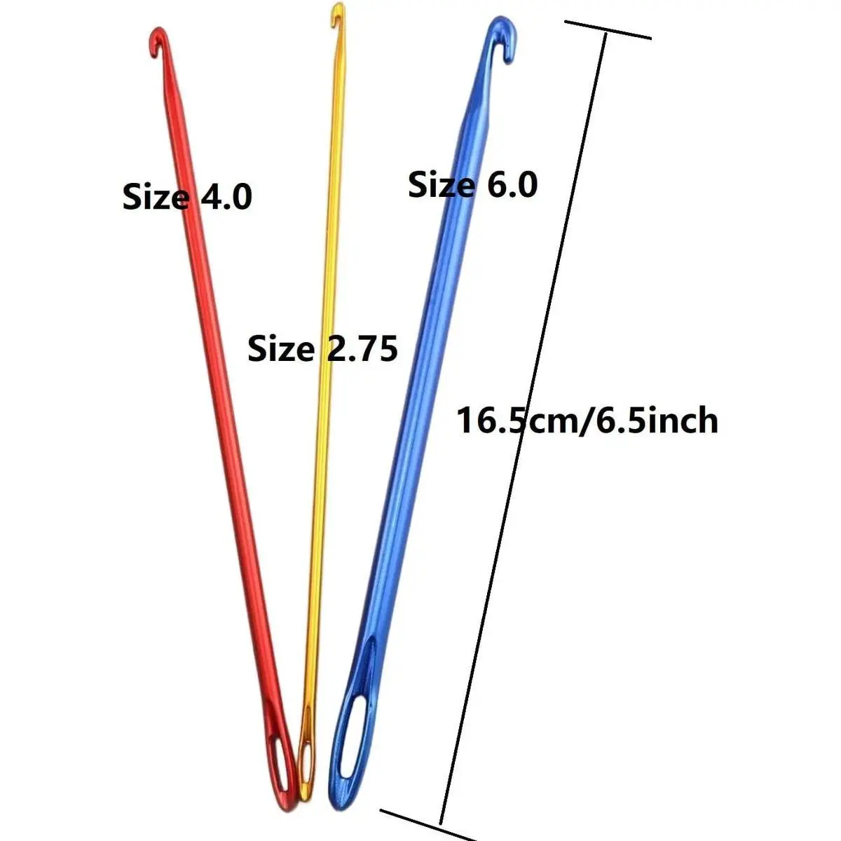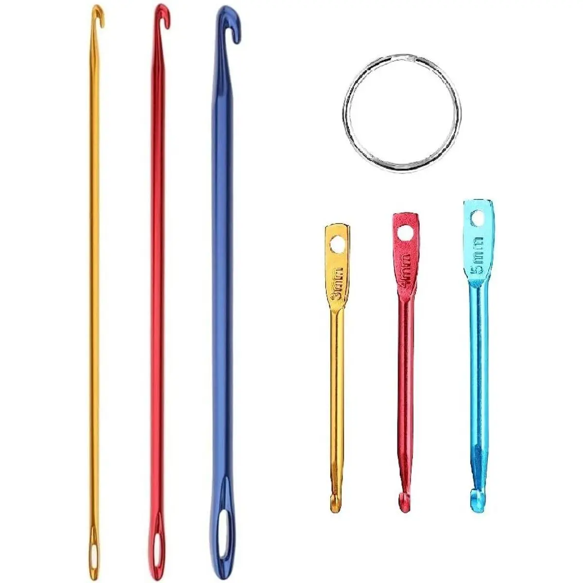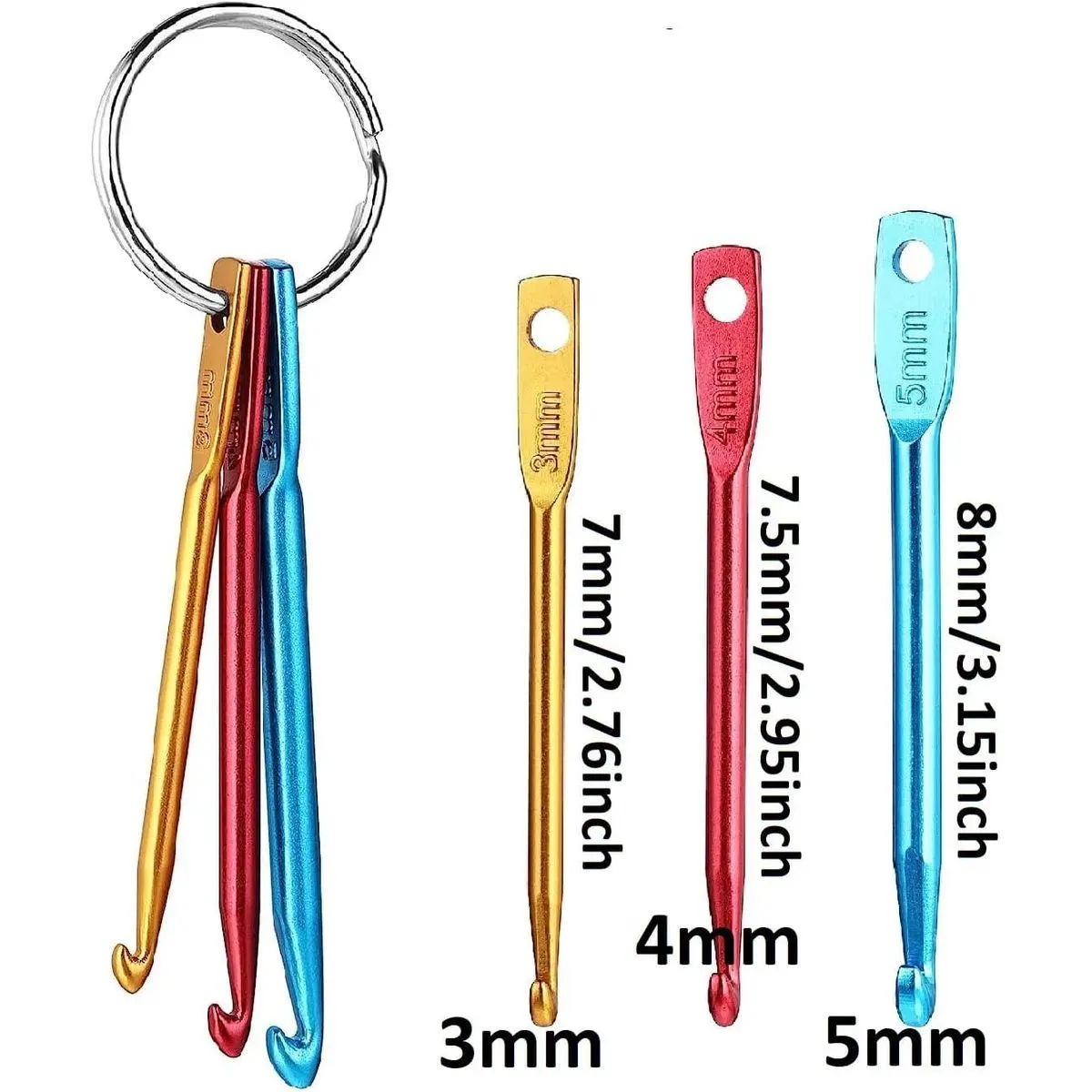 The set includes aluminum Tunisian Afghan crochet knitting needles sizes (2.75mm/4.0mm/6.0mm) and lengths 16.5cm/6.5inch. And the mini crochet hooks keychain comes in sizes (3mm/4mm/5mm) with lengths 7cm/7.5cm/8cm.