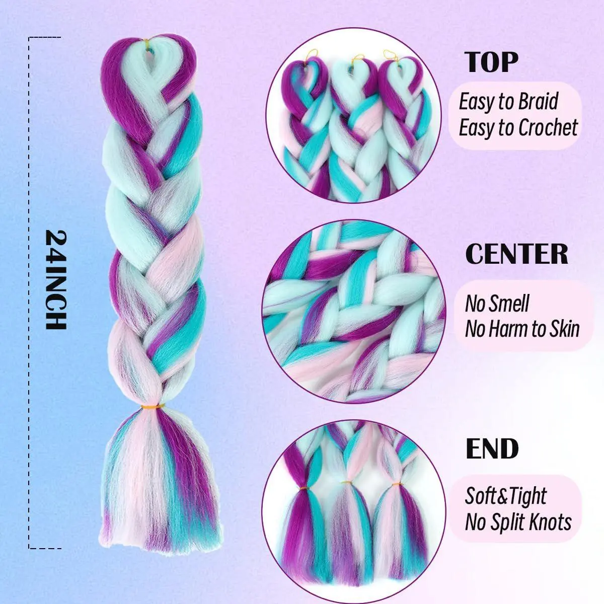 ★【Advantage】High-quality synthetic hair, No tangle,No smell,No shedding,Easy to braid.
