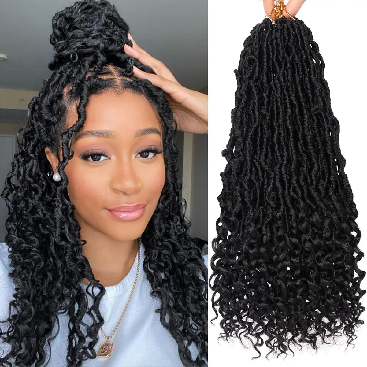 Material: Curly goddess faux locs, crochet hair made with high-quality synthetic fibers, handmade is very close to real human hair, No odor, natural luster, light weight.