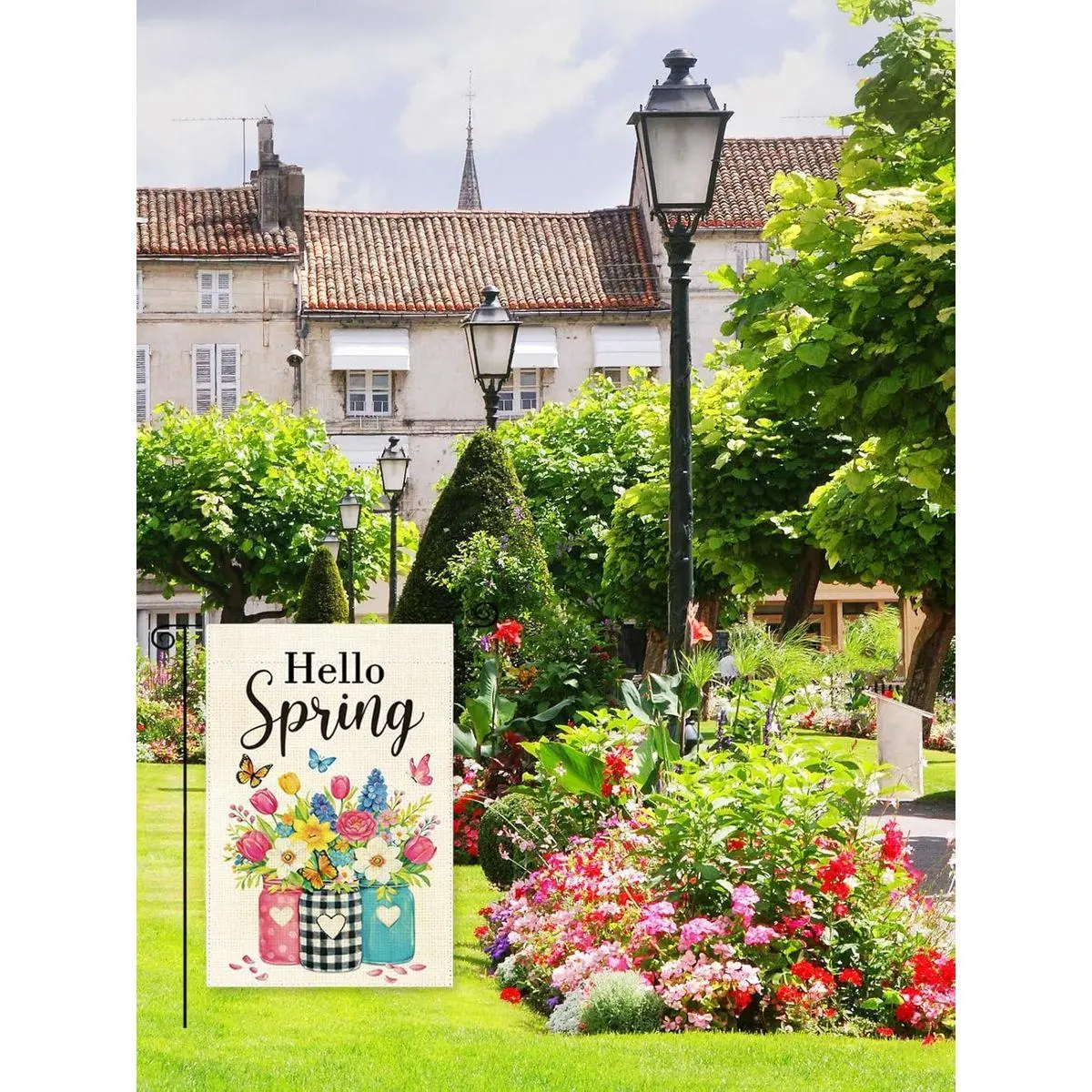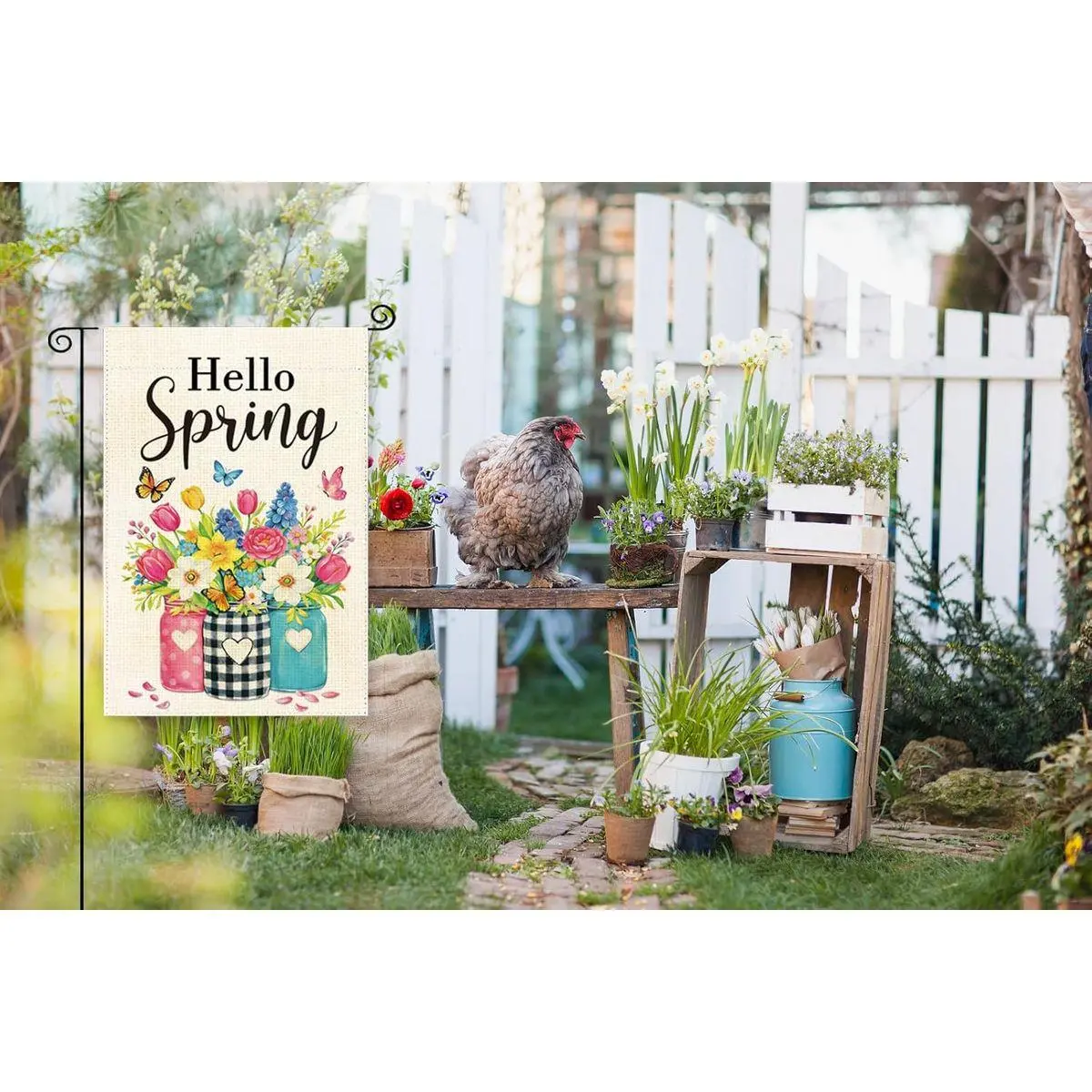 Easy to Use: Designed as spring garden flags for outside, this spring flag includes a top sleeve that fits standard flagpoles, brackets, arbors, or stands (flag pole not included). Easy to hang, machine washable, and ideal for festive spring garden flag decorations, with a burlap-style look similar to a spring burlap garden flag while offering the durability of polyester.