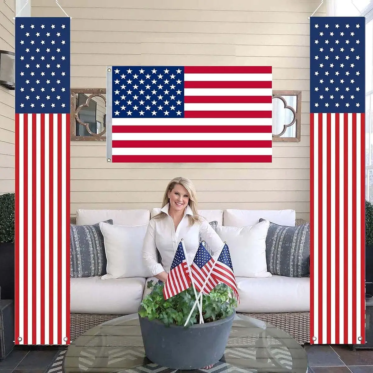 Outdoor Hanging American Flag Banners Perfect for any patriotic event. They can be widely used in different occasions, such as house, restaurant, shopping mall unique welcome for all your guests.
